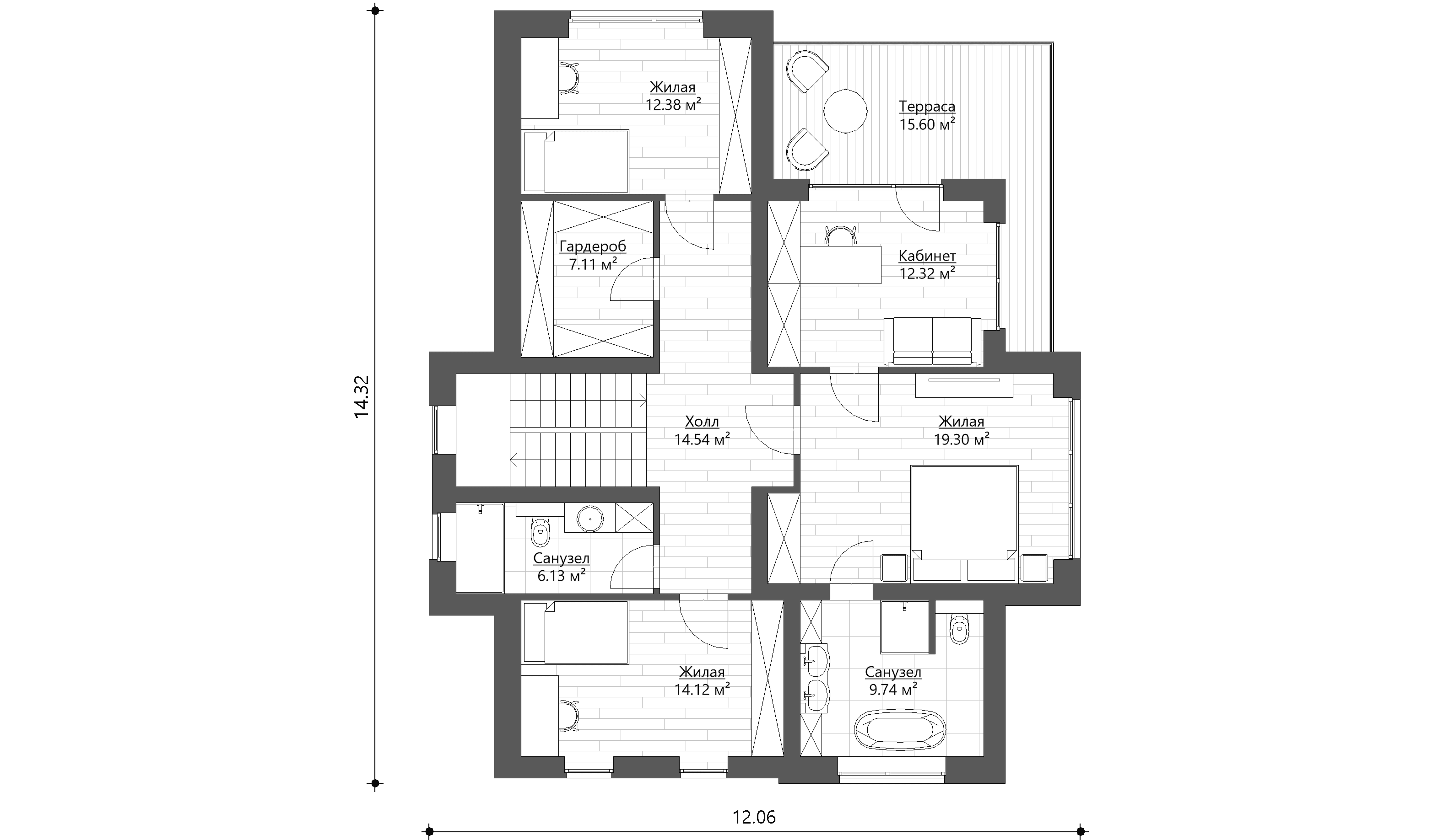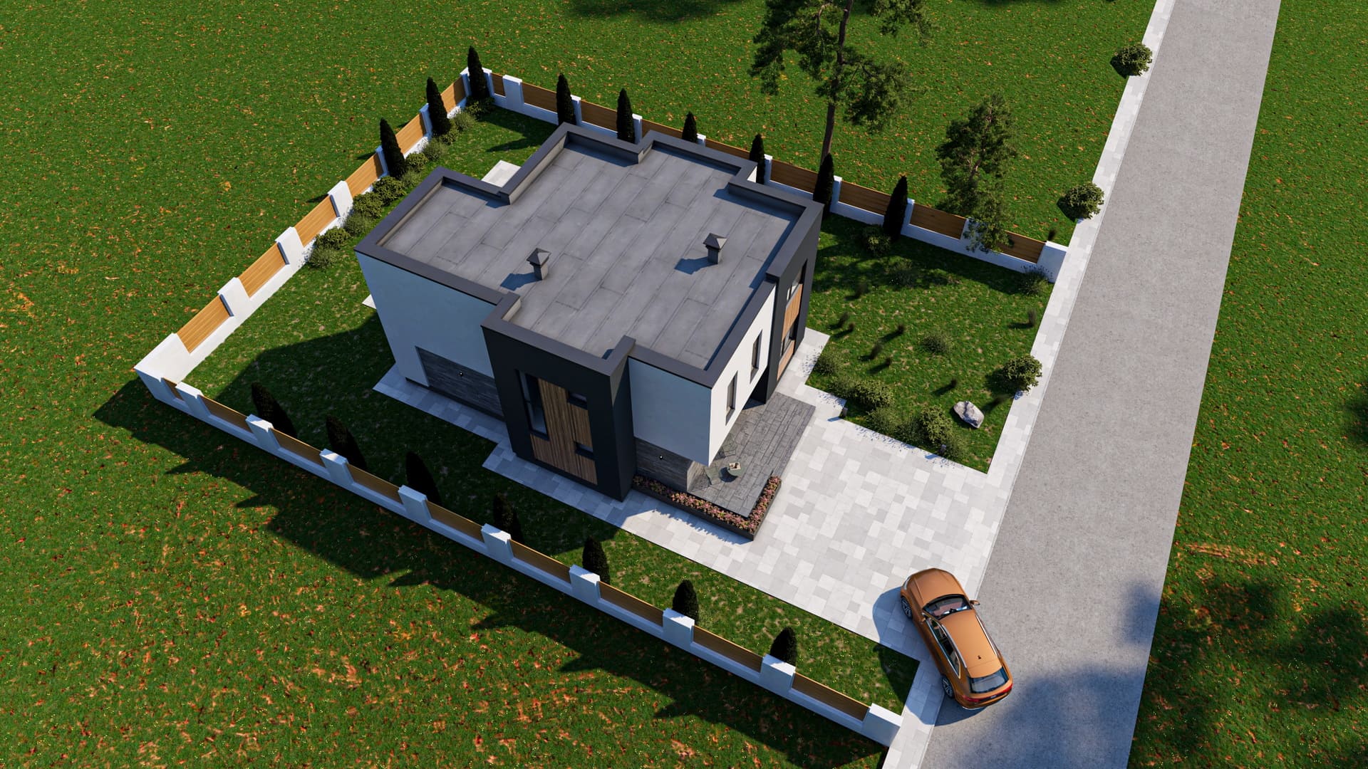 Современный дом со плоской кровлей. Компактный, уютный и эргономичный, имеющий все необходимое для комфортного круглогодичного или временного проживания. Помещения разделены на гостевую и спальную зоны. Широкие, комфортные крыльцо и терраса накрыты плоской кровлей. Из гостиной предусмотрен выход на просторную террасу. Проект имеет зеркальный вариант планировки, что позволяет разместить его на участке с любой ориентацией по сторонам света, а сдержанный современный стиль легко впишется в любую окружающую застройку.