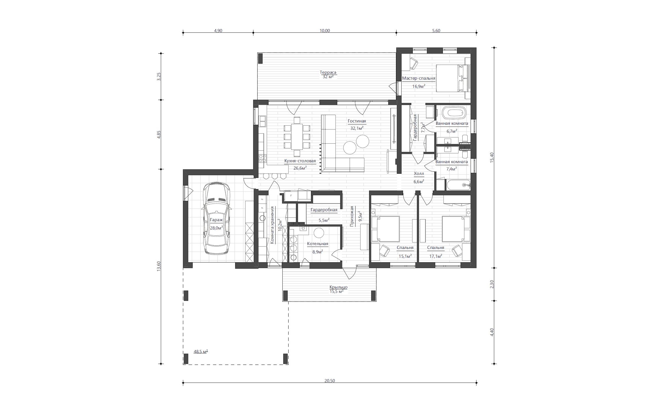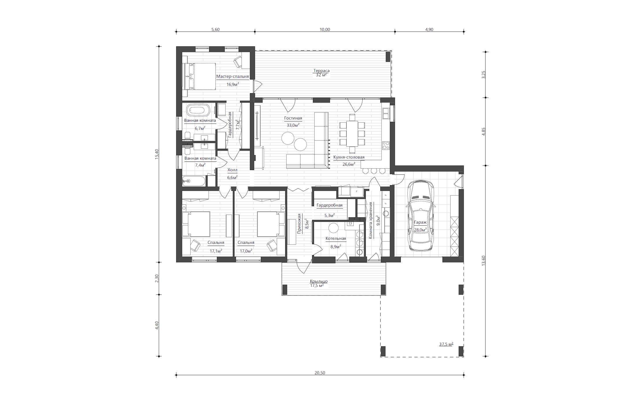 - Мастер-спальня с гардеробной