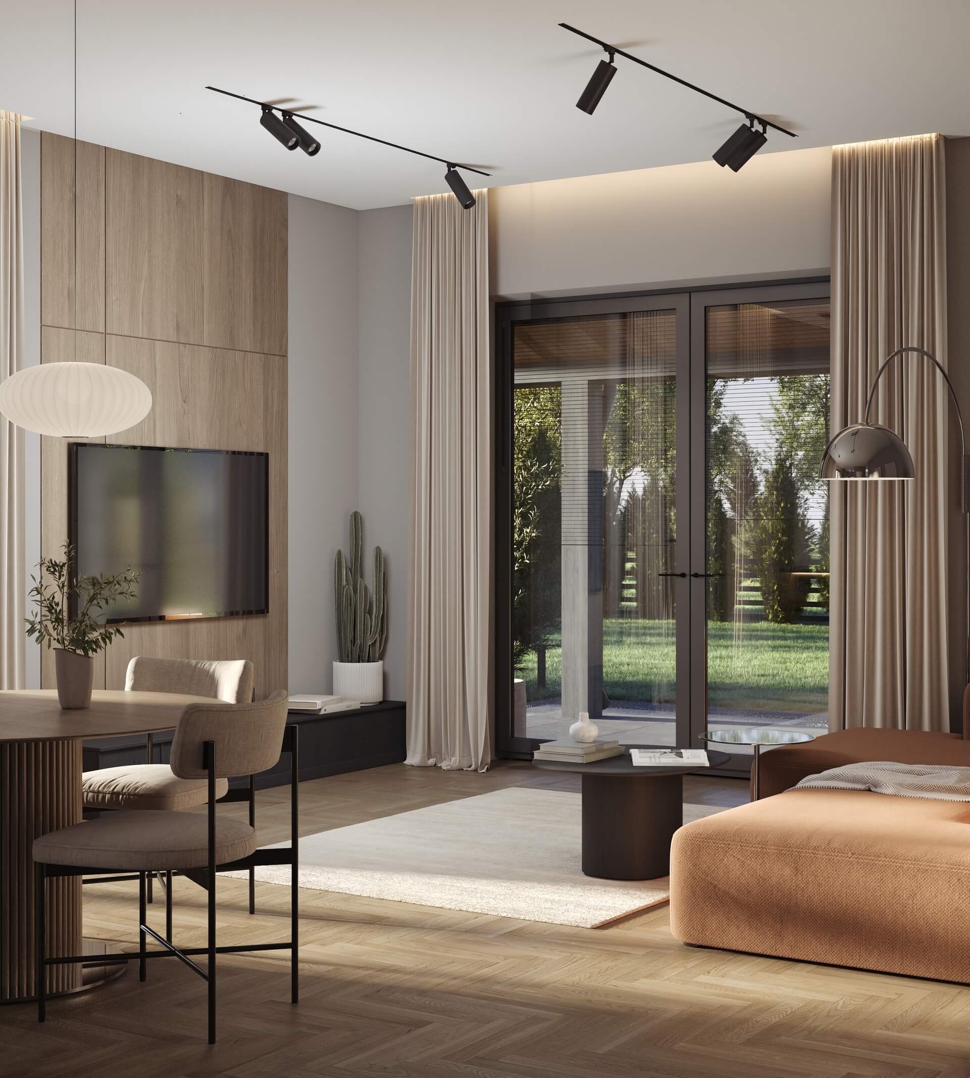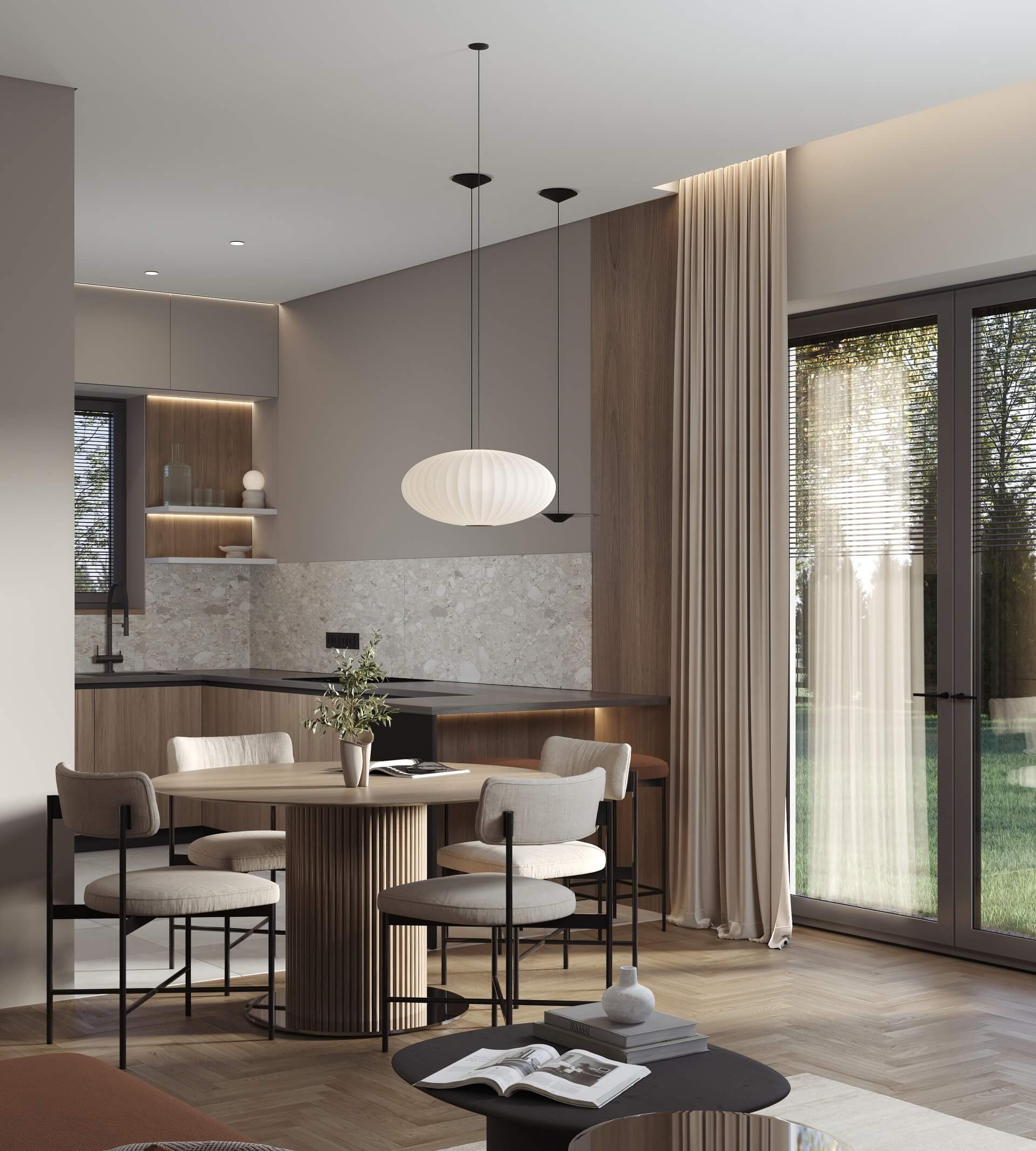 Просторная кухня-гостиная с возможностью предусмотреть камин и крытая терраса позволит провести множество прекрасных вечеров в компании близких вам людей.