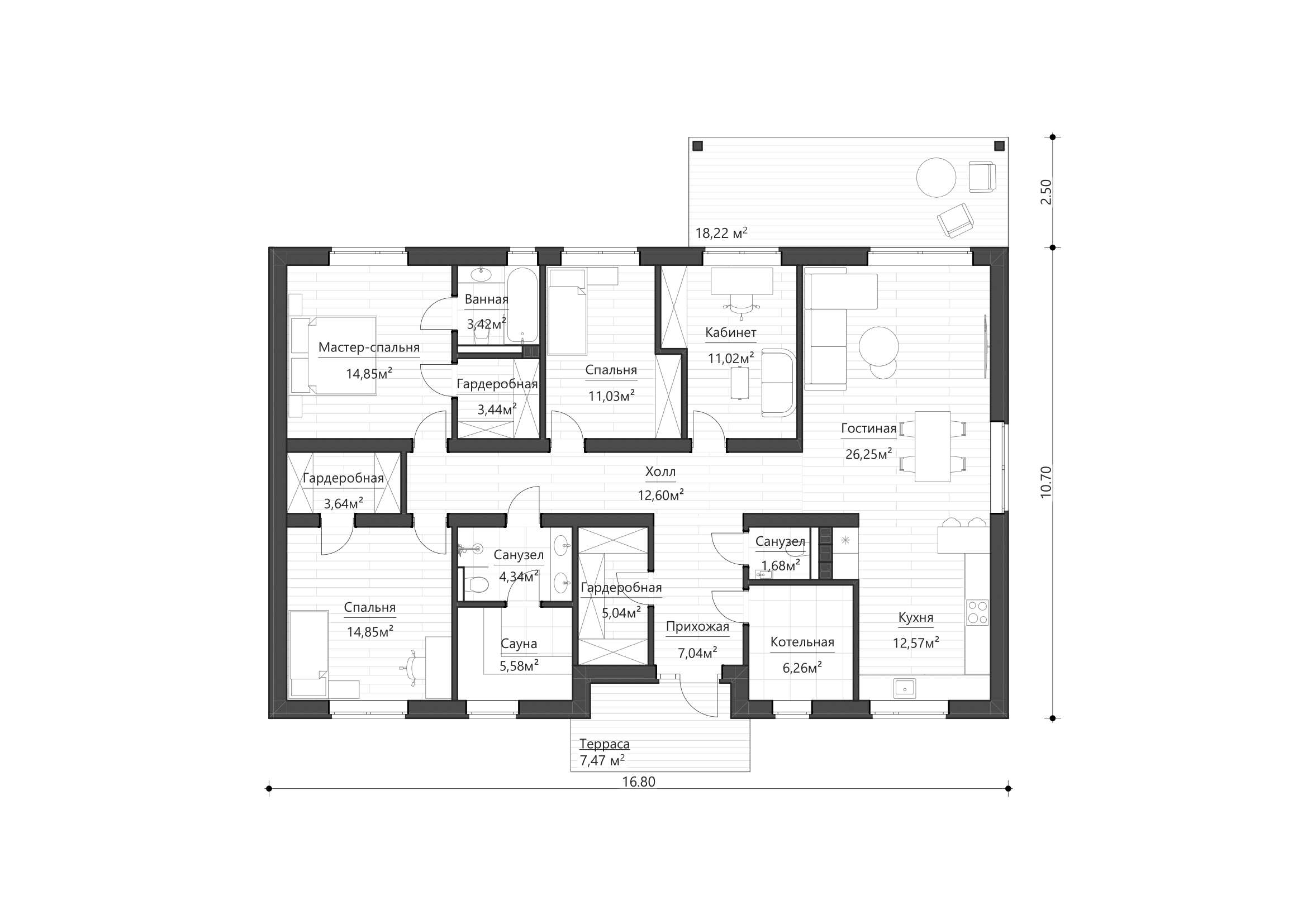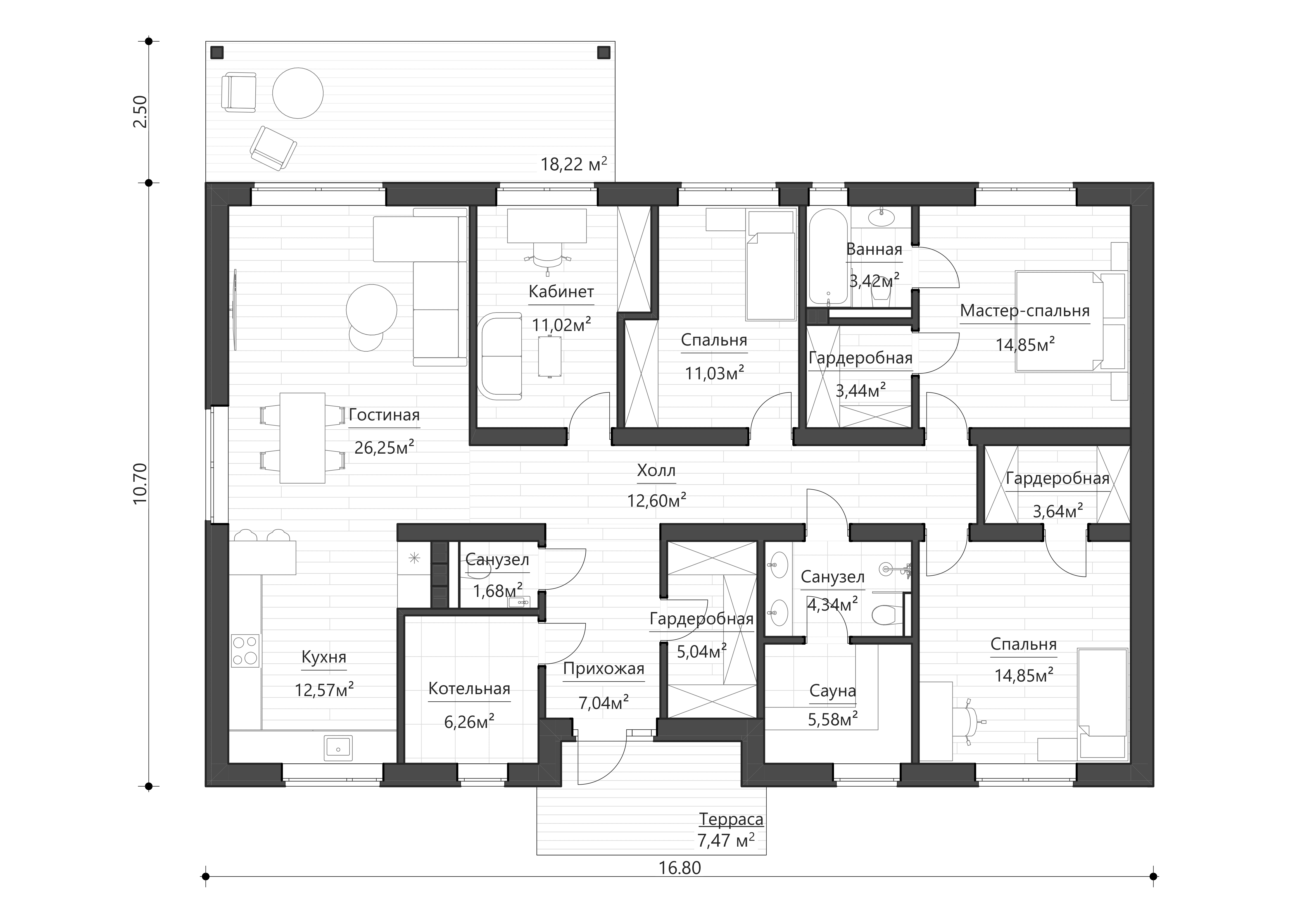 - Мастер-спальня с гардеробной