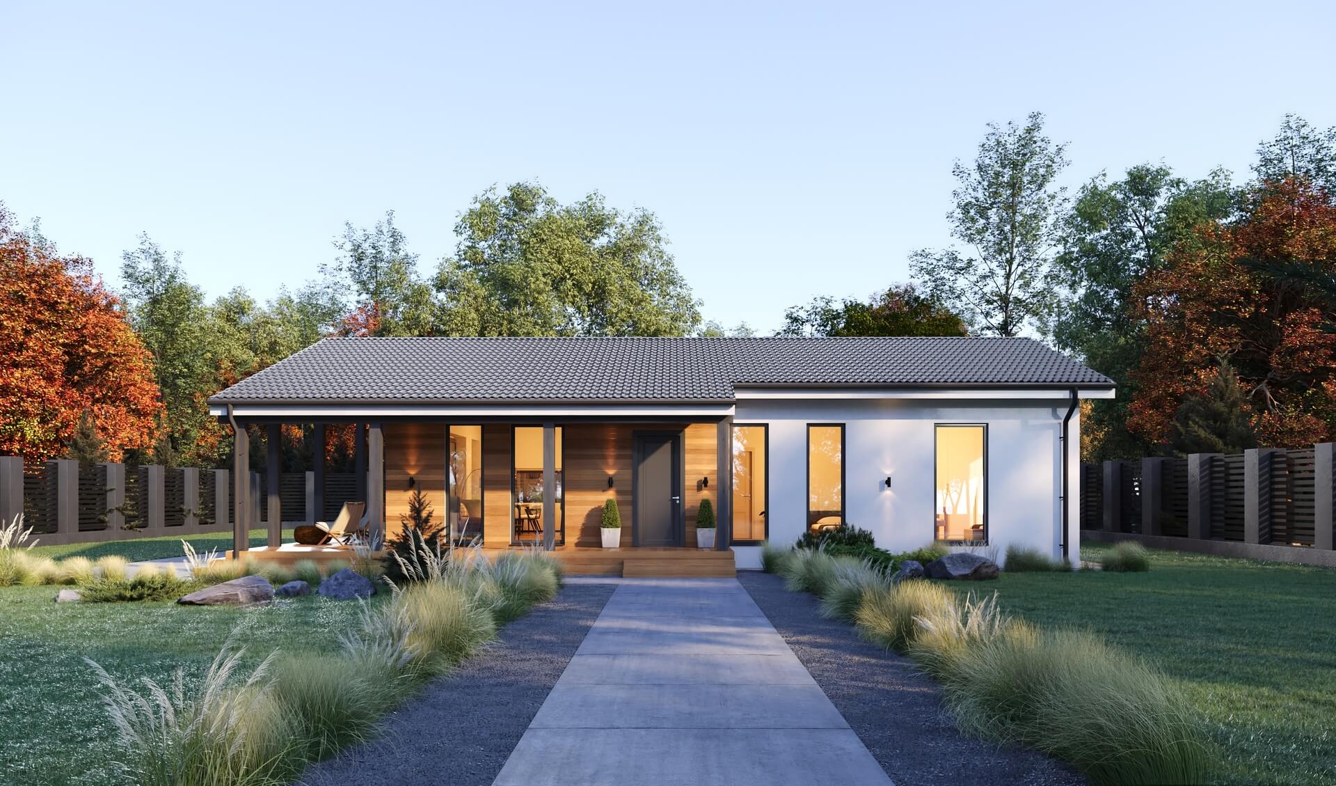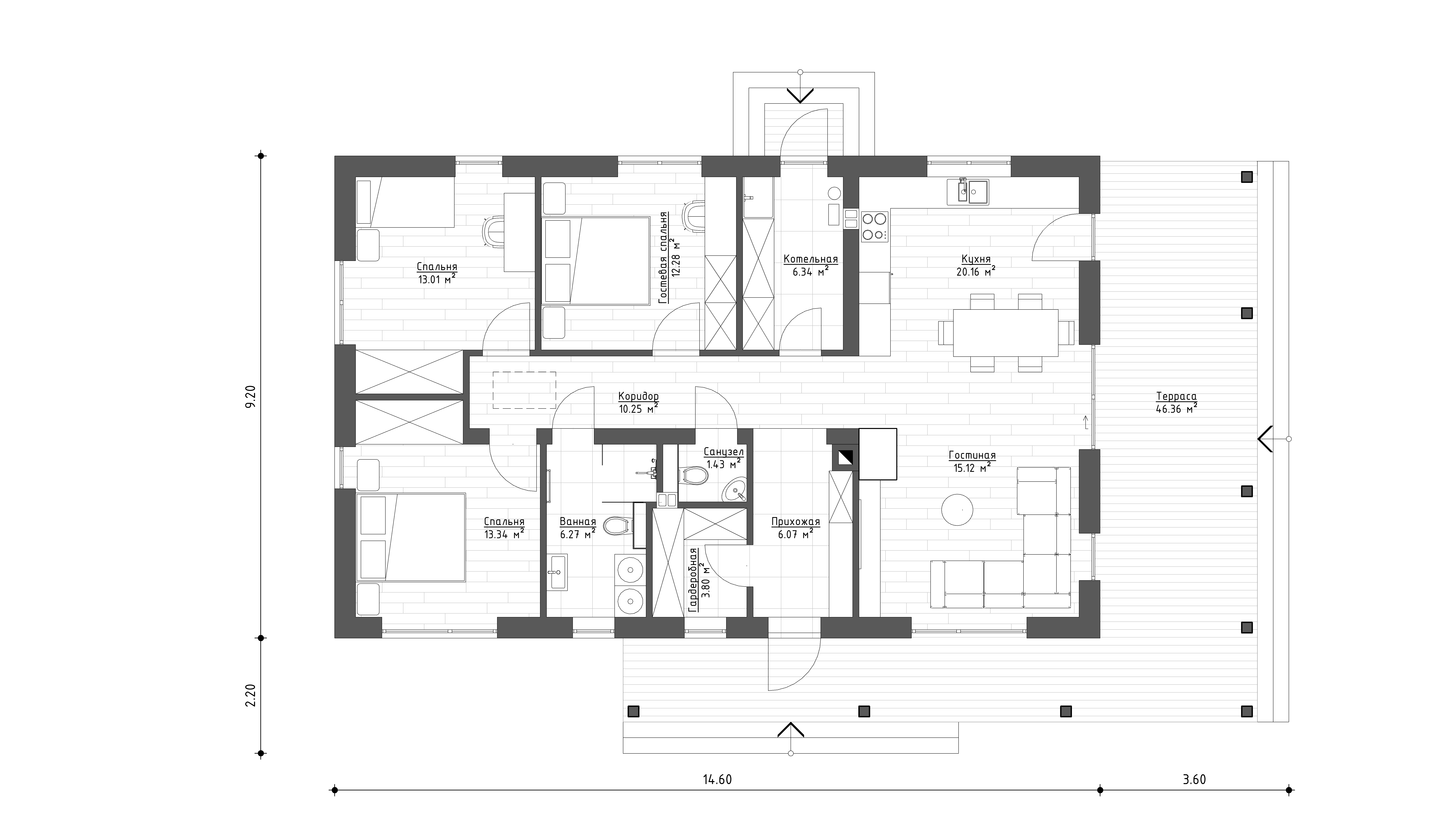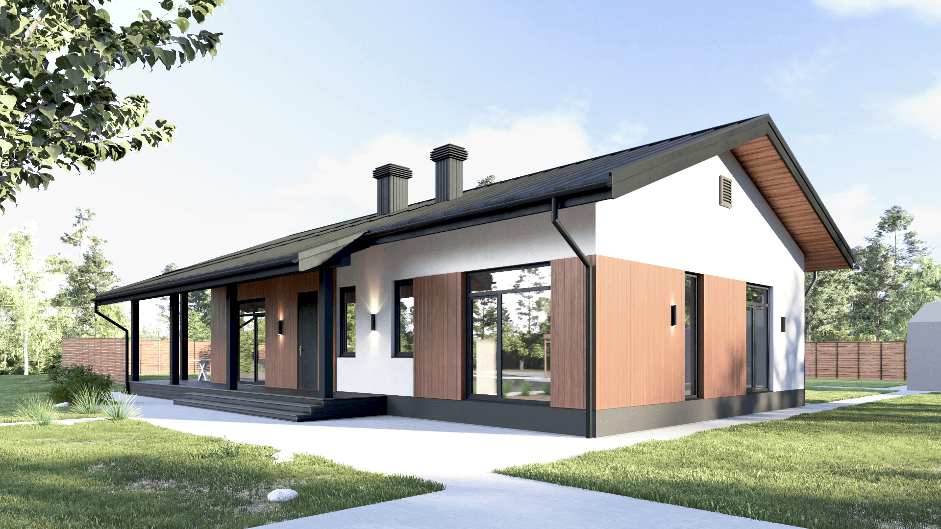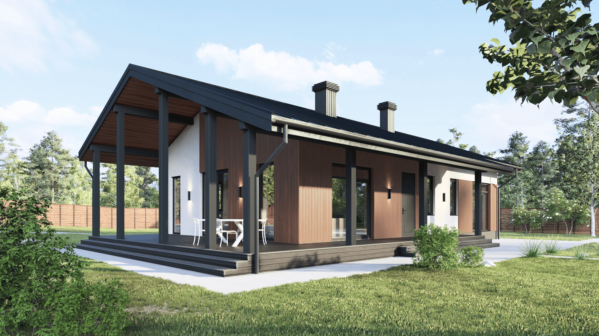 Простой и эстетичный дом отлично подойдет для постоянного проживания семьи из 3-4 человек.