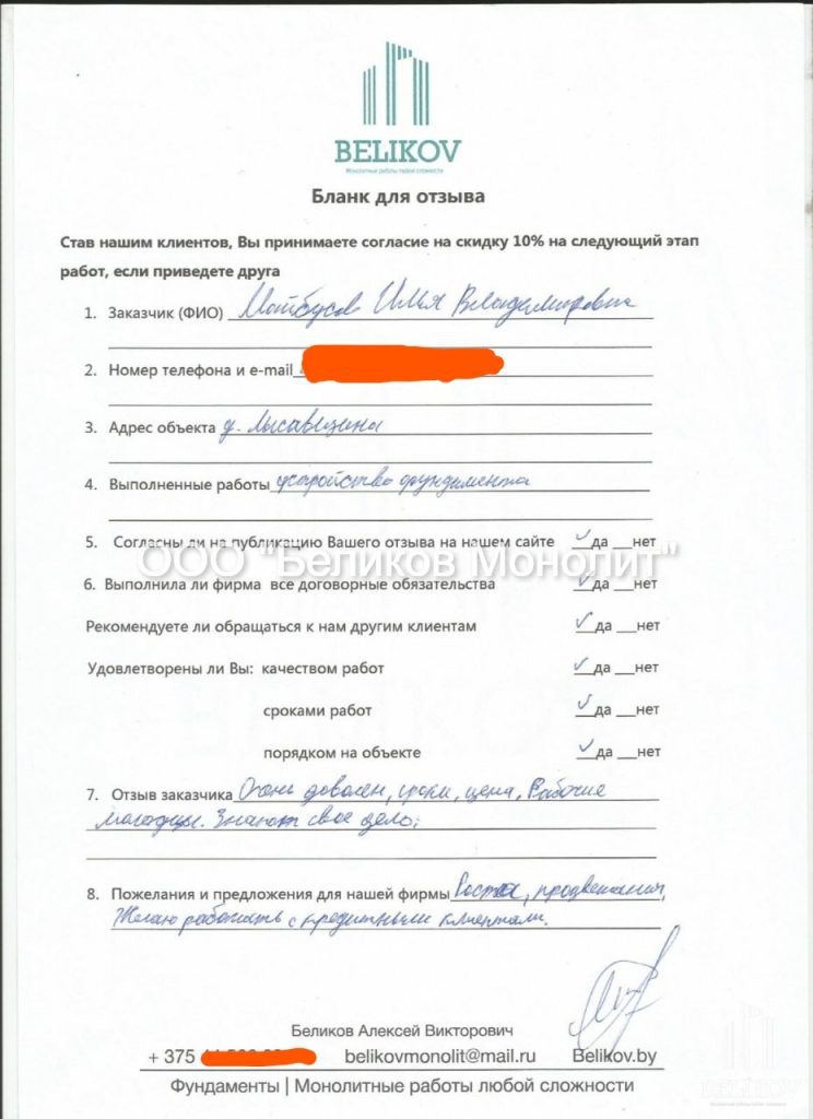 ленточный фундамент под дом д. Лысовщина