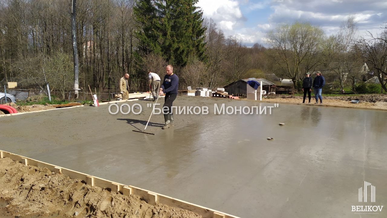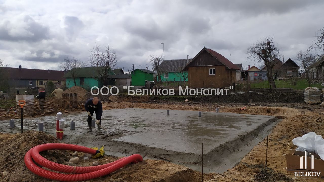 плитный фундамент с ребрами вниз под дом г. Логойск