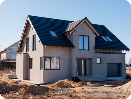 Стропильная система из сухой строганной доски 45х195мм. Кровля - Мягкая черепица по стропильной системе. Так же пирог кровли включает в себя гидроизоляцию из диффузионной мембраны Delta Neo Vent, утепление плитным базальтовым утеплителем Paroc eXtra 250 мм. и пароизоляцию Delta c проклейкой швов специальным скотчем.