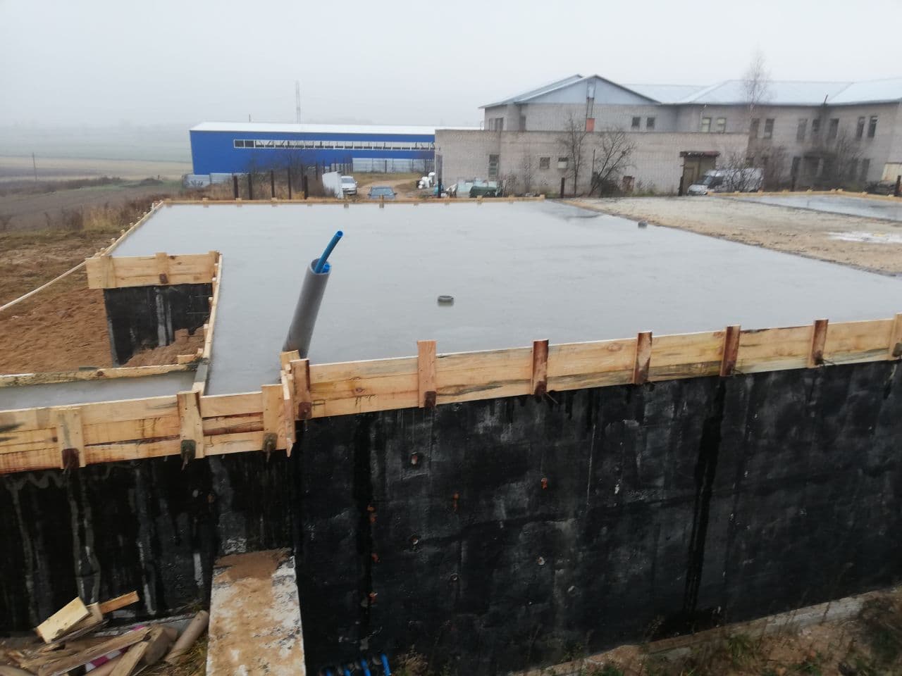В данном проекте в качестве фундамента была выбрана утепленная шведская плита t=300 мм. Коммуникации нулевого цикла включают: разводку канализации, ввод воды, ввод электрического кабеля, выводы кабеля для ЛОС и скважины, подвод воздуха к камину.