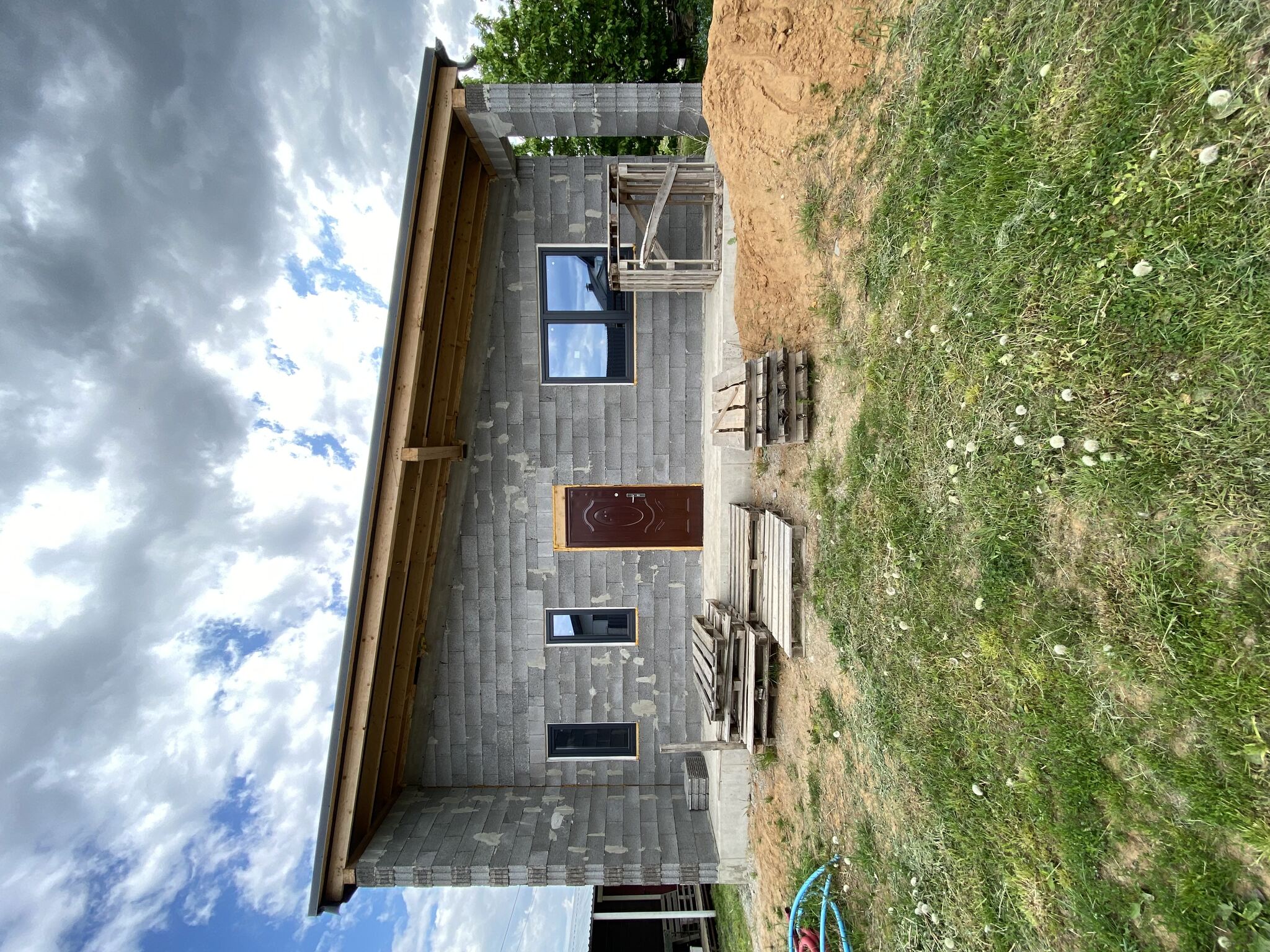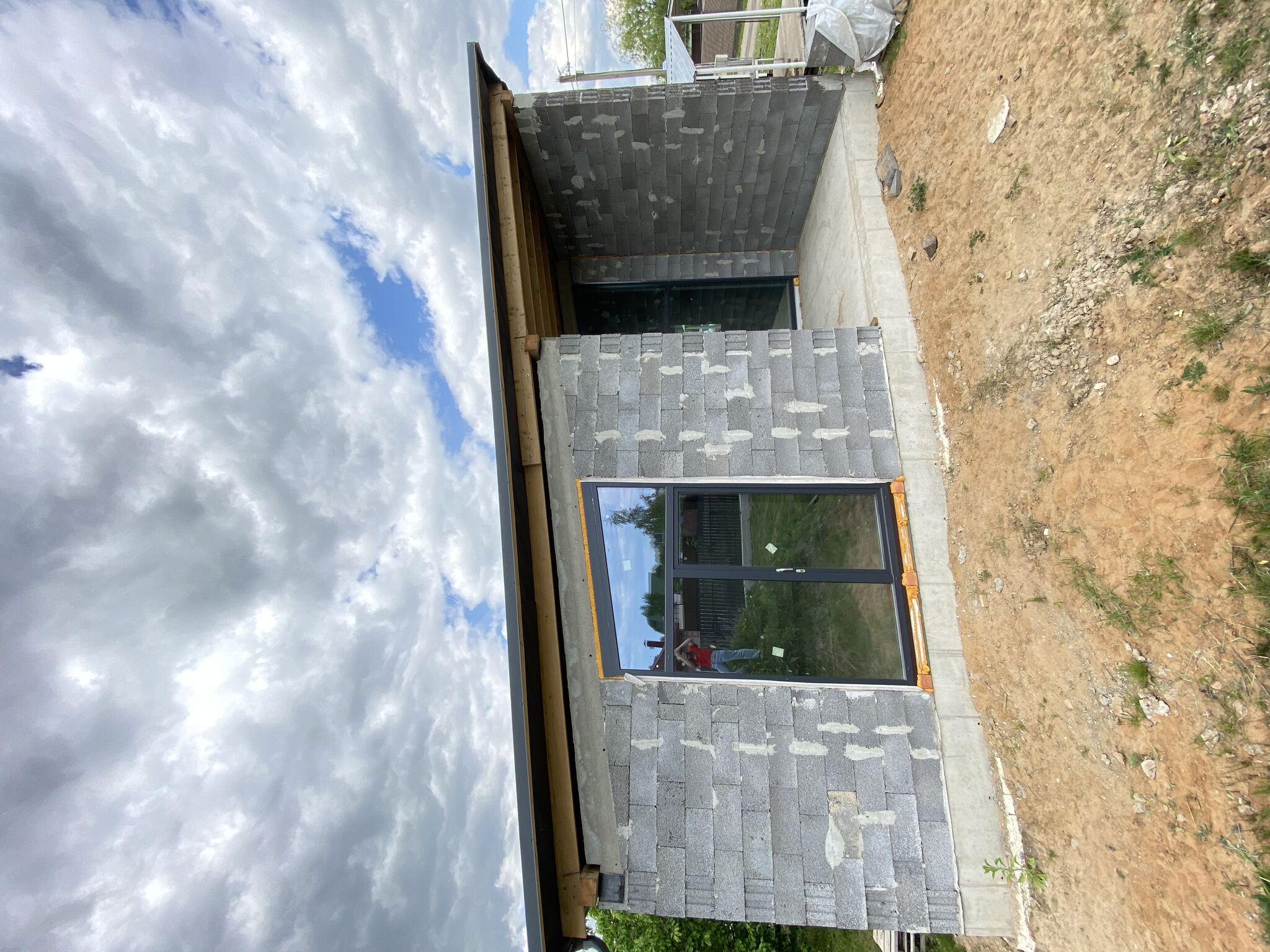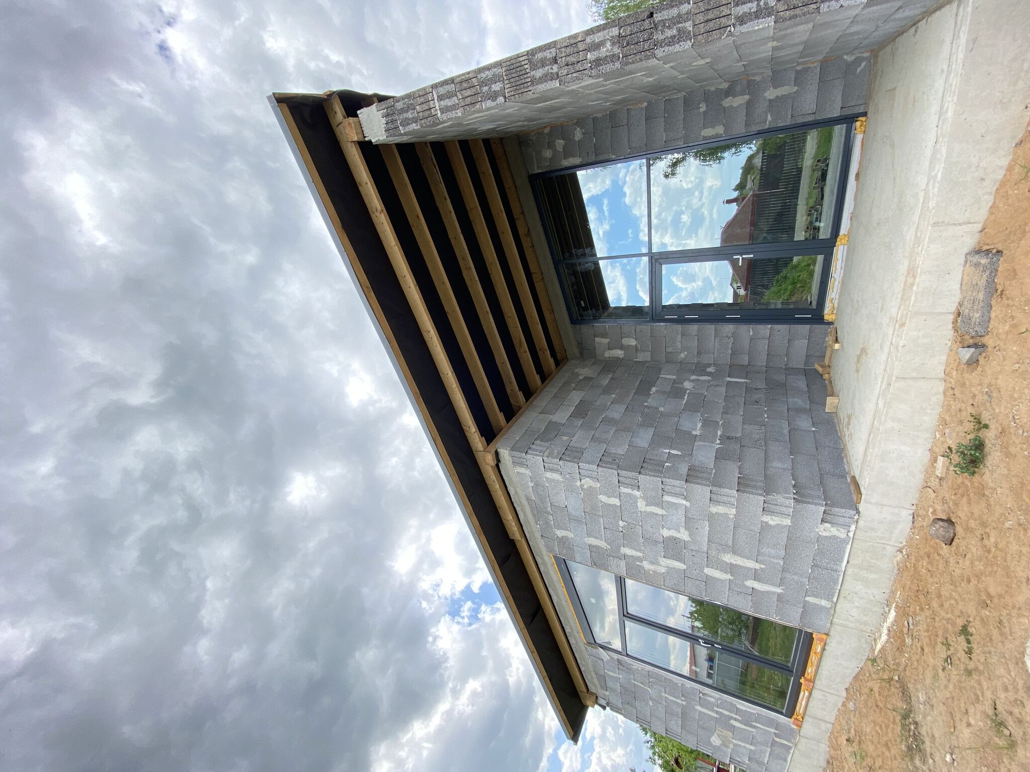 Стропильная система из сухой строганной доски 45х195мм. Кровля - Мягкая черепица по стропильной системе. Так же пирог кровли включает в себя гидроизоляцию из диффузионной мембраны Delta Neo Vent, утепление плитным базальтовым утеплителем Paroc eXtra 250 мм. и пароизоляцию Delta c проклейкой швов специальным скотчем.