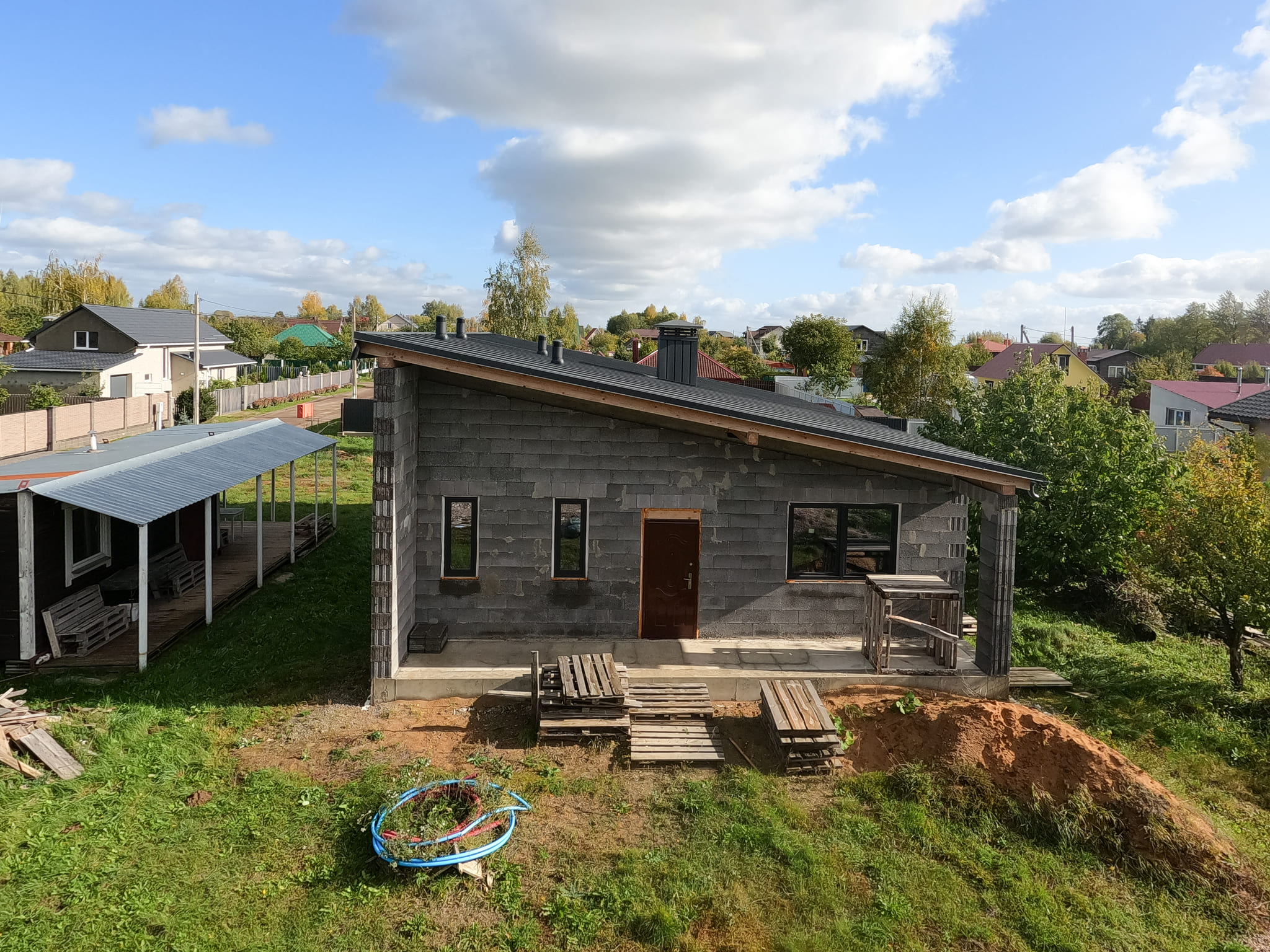 Стены из газобетонных блоков: Наружные – 400 мм. D400. Внутренние несущие – 250 мм. D500. Перегородки – 150 мм. D500. Армирование через каждые три ряда + подоконные зоны. Все бетонные элементы утеплены ЭППС + блок для исключения мостиков холода