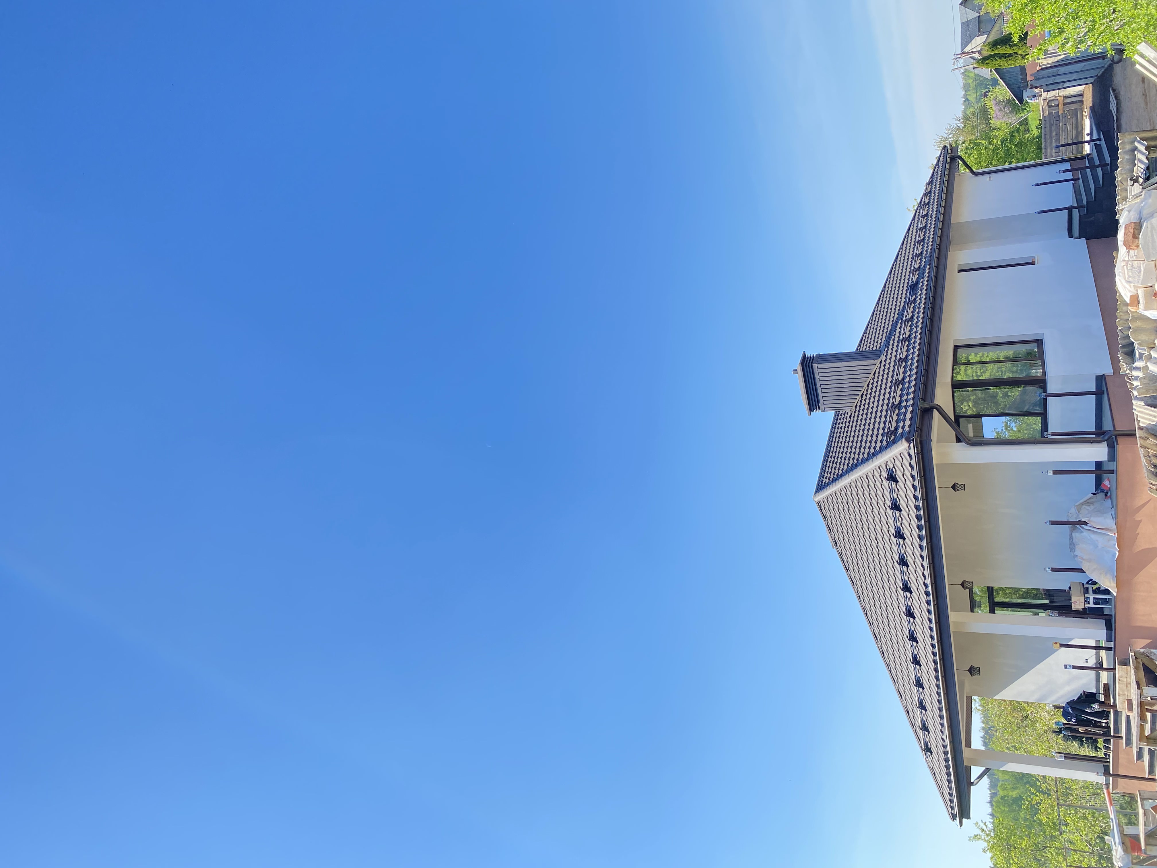 Стропильная система из сухой строганной доски 45х195мм. Кровля - Мягкая черепица по стропильной системе. Так же пирог кровли включает в себя гидроизоляцию из диффузионной мембраны Delta Neo Vent, утепление плитным базальтовым утеплителем Paroc eXtra 250 мм. и пароизоляцию Delta c проклейкой швов специальным скотчем.