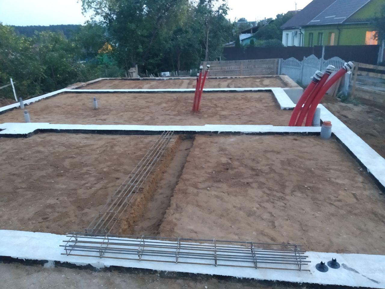 В данном проекте в качестве фундамента была выбрана утепленная шведская плита t=300 мм. Коммуникации нулевого цикла включают: разводку канализации, ввод воды, ввод электрического кабеля, выводы кабеля для ЛОС и скважины, подвод воздуха к камину.