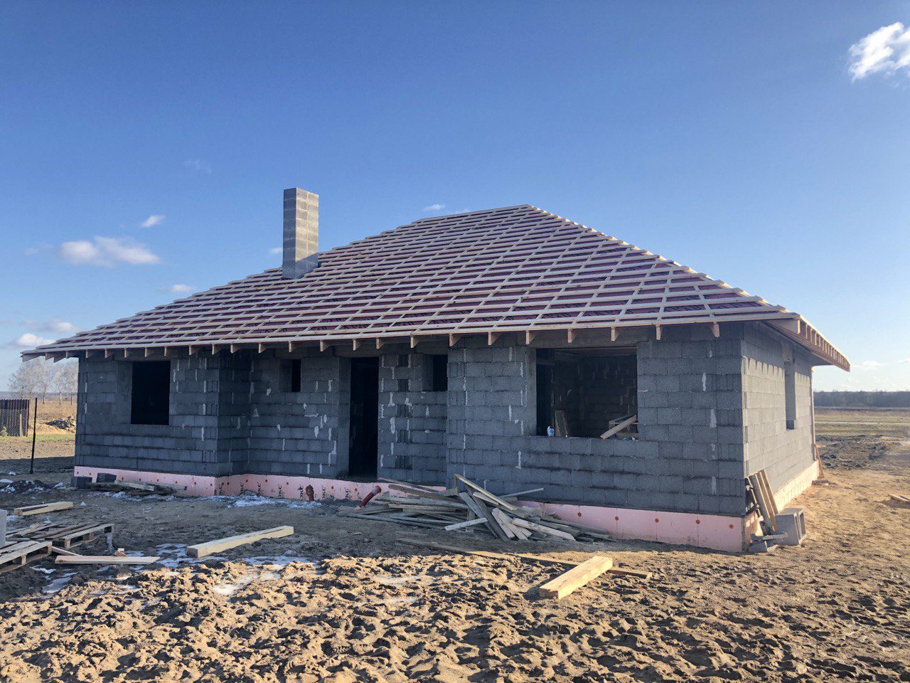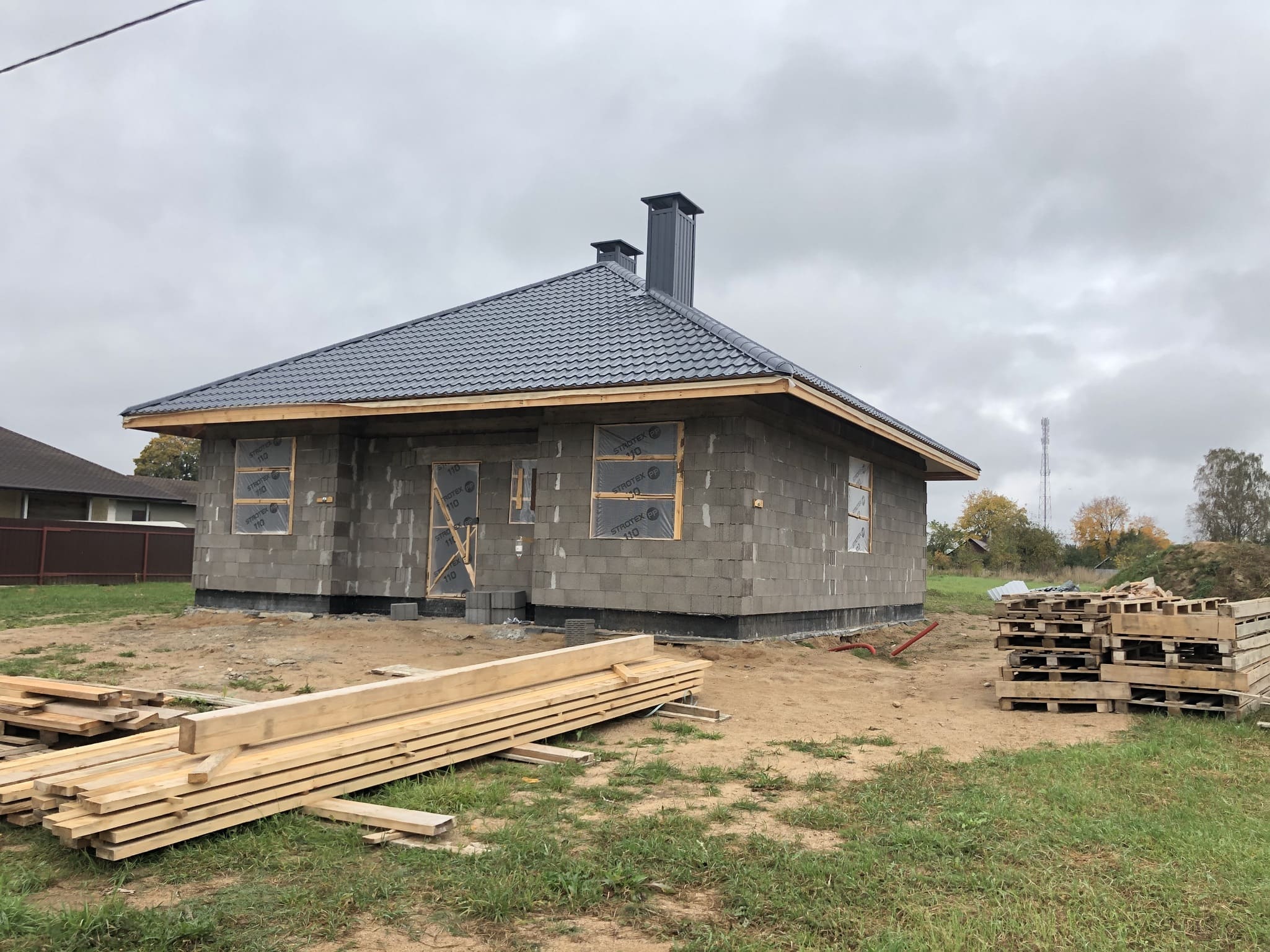 Стропильная система из сухой строганной доски 45х195мм. Кровля - Мягкая черепица по стропильной системе. Так же пирог кровли включает в себя гидроизоляцию из диффузионной мембраны Delta Neo Vent, утепление плитным базальтовым утеплителем Paroc eXtra 250 мм. и пароизоляцию Delta c проклейкой швов специальным скотчем.