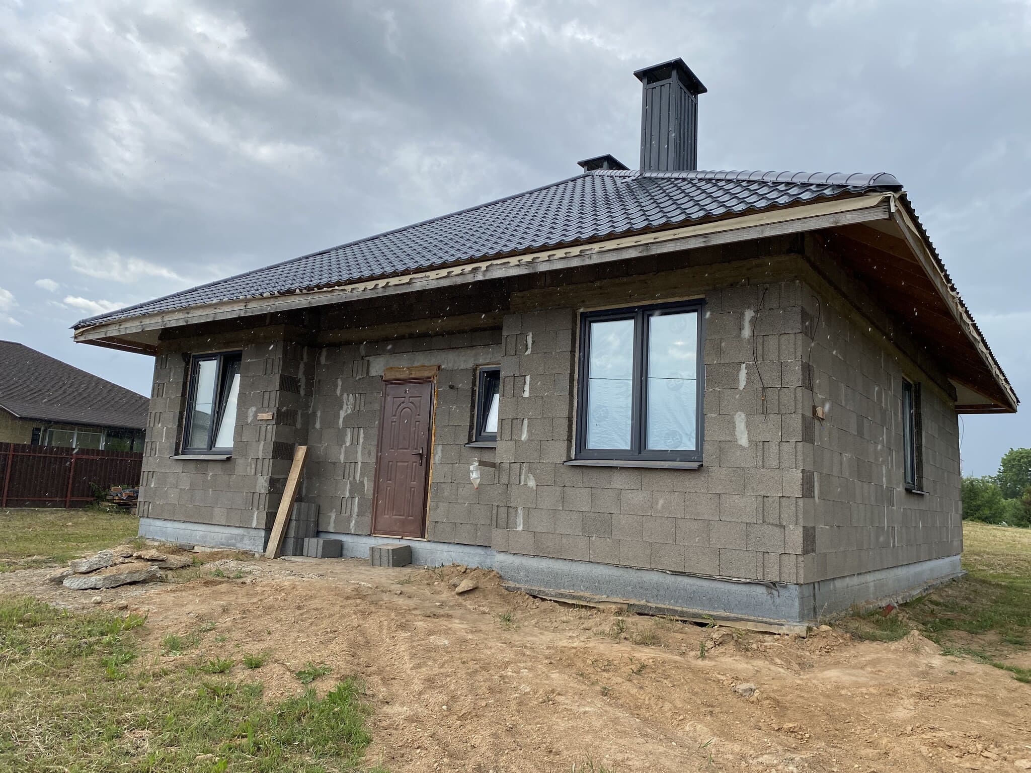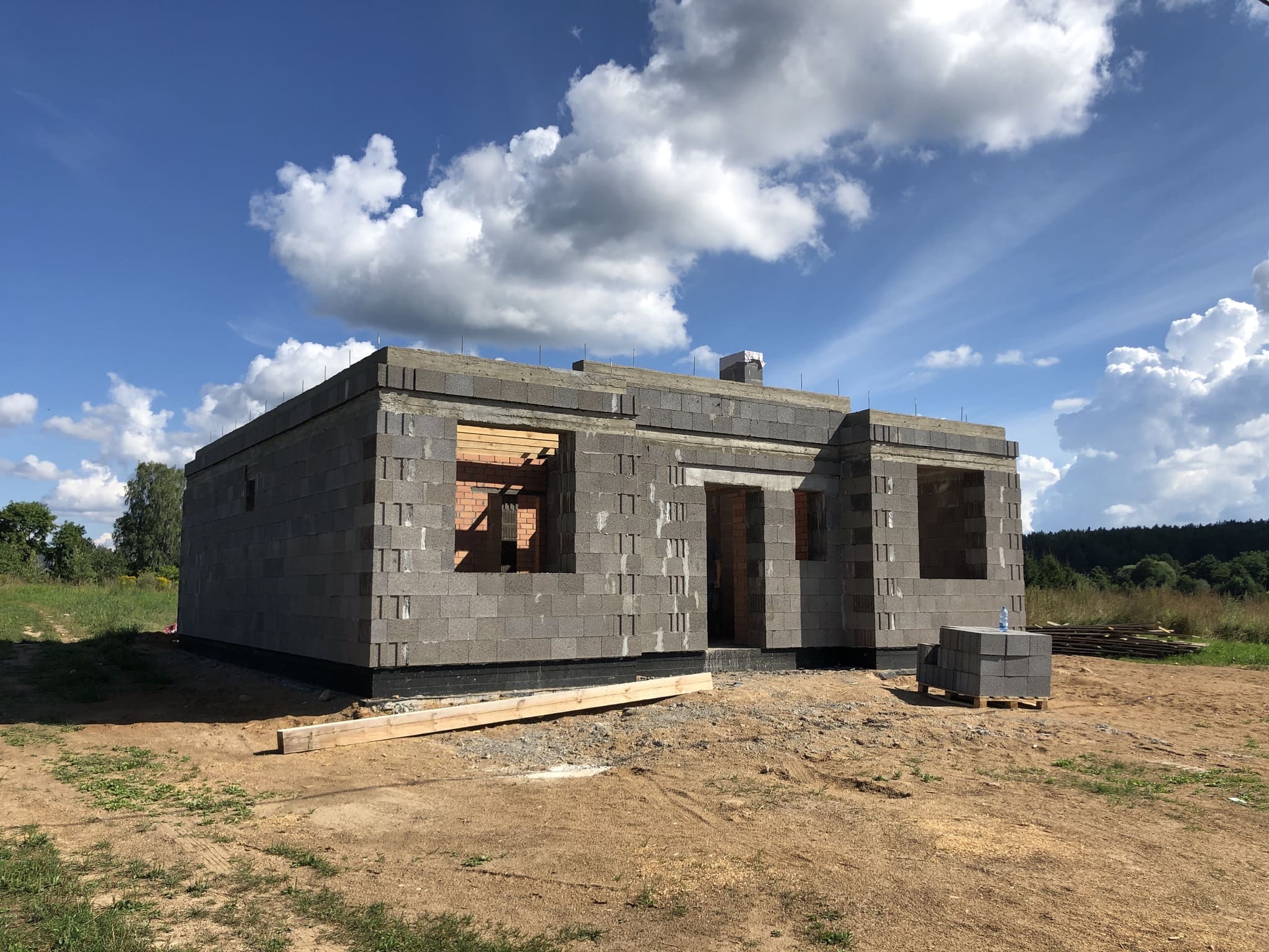 Стены из газобетонных блоков: Наружные – 400 мм. D400. Внутренние несущие – 250 мм. D500. Перегородки – 150 мм. D500. Армирование через каждые три ряда + подоконные зоны. Все бетонные элементы утеплены ЭППС + блок для исключения мостиков холода