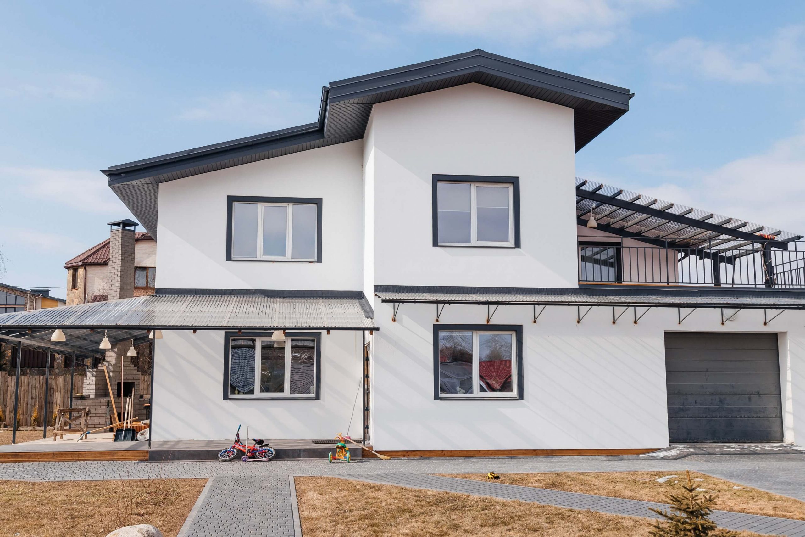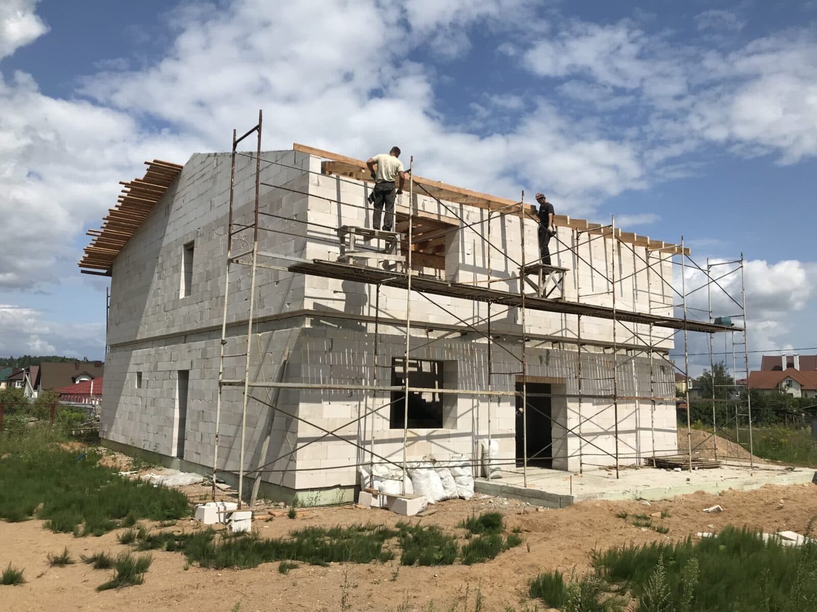Стены из газобетонных блоков: Наружные – 400 мм. D400. Внутренние несущие – 250 мм. D500. Перегородки – 150 мм. D500. Армирование через каждые три ряда + подоконные зоны. Все бетонные элементы утеплены ЭППС + блок для исключения мостиков холода