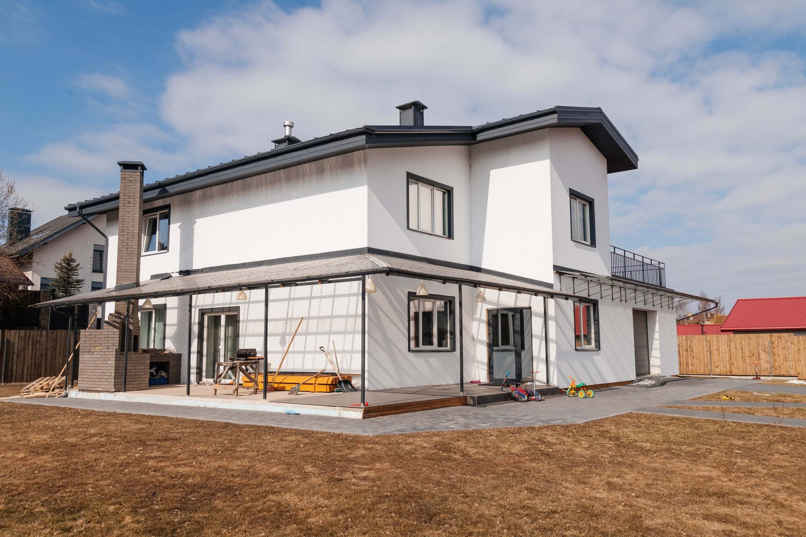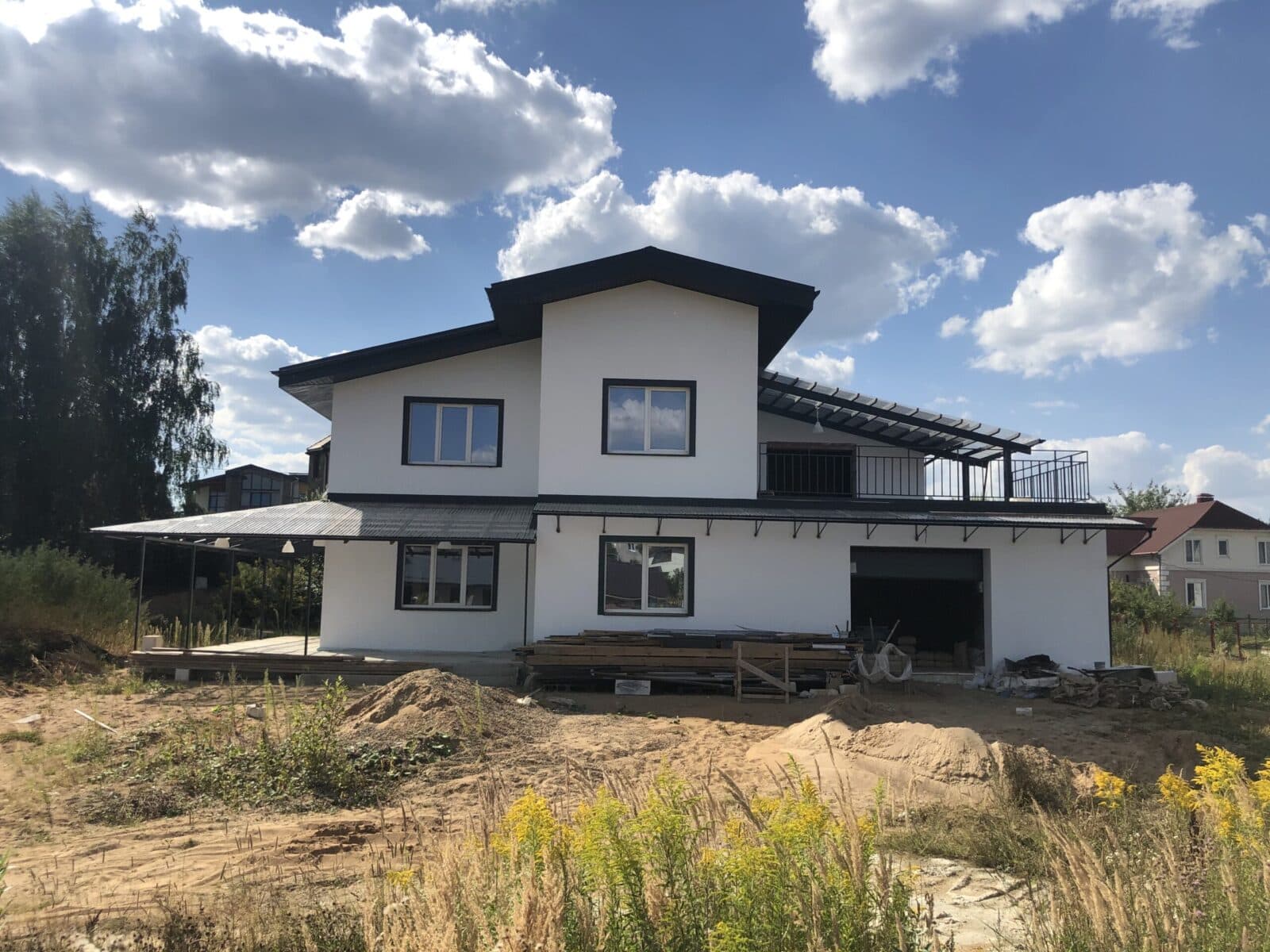 Стропильная система из сухой строганной доски 45х195мм. Кровля - Мягкая черепица по стропильной системе. Так же пирог кровли включает в себя гидроизоляцию из диффузионной мембраны Delta Neo Vent, утепление плитным базальтовым утеплителем Paroc eXtra 250 мм. и пароизоляцию Delta c проклейкой швов специальным скотчем.