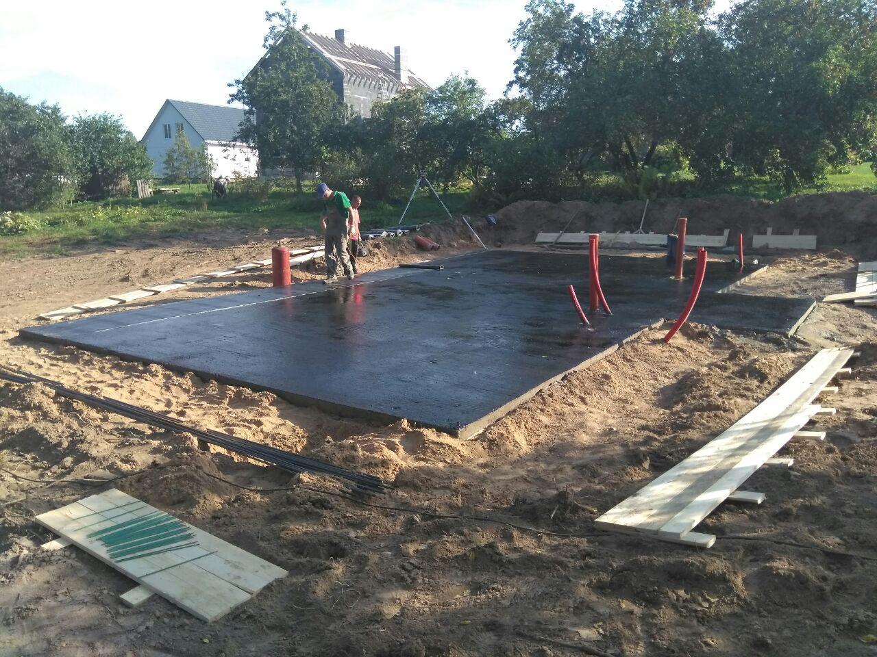 В данном проекте в качестве фундамента была выбрана утепленная шведская плита t=300 мм. Коммуникации нулевого цикла включают: разводку канализации, ввод воды, ввод электрического кабеля, выводы кабеля для ЛОС и скважины, подвод воздуха к камину.
