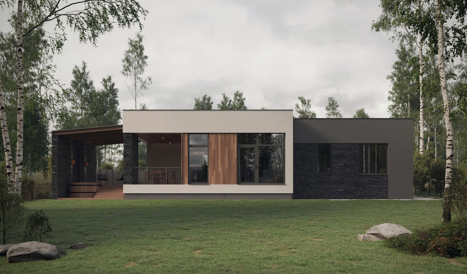 Стильный дом для небольшой семьи — это идеальное сочетание комфорта и уединения, гармонично вписывающееся в окружающую природу. Использование природных материалов для отделки, таких как дерево и камень, создает атмосферу тепла и уюта, подчеркивая связь с природой.
