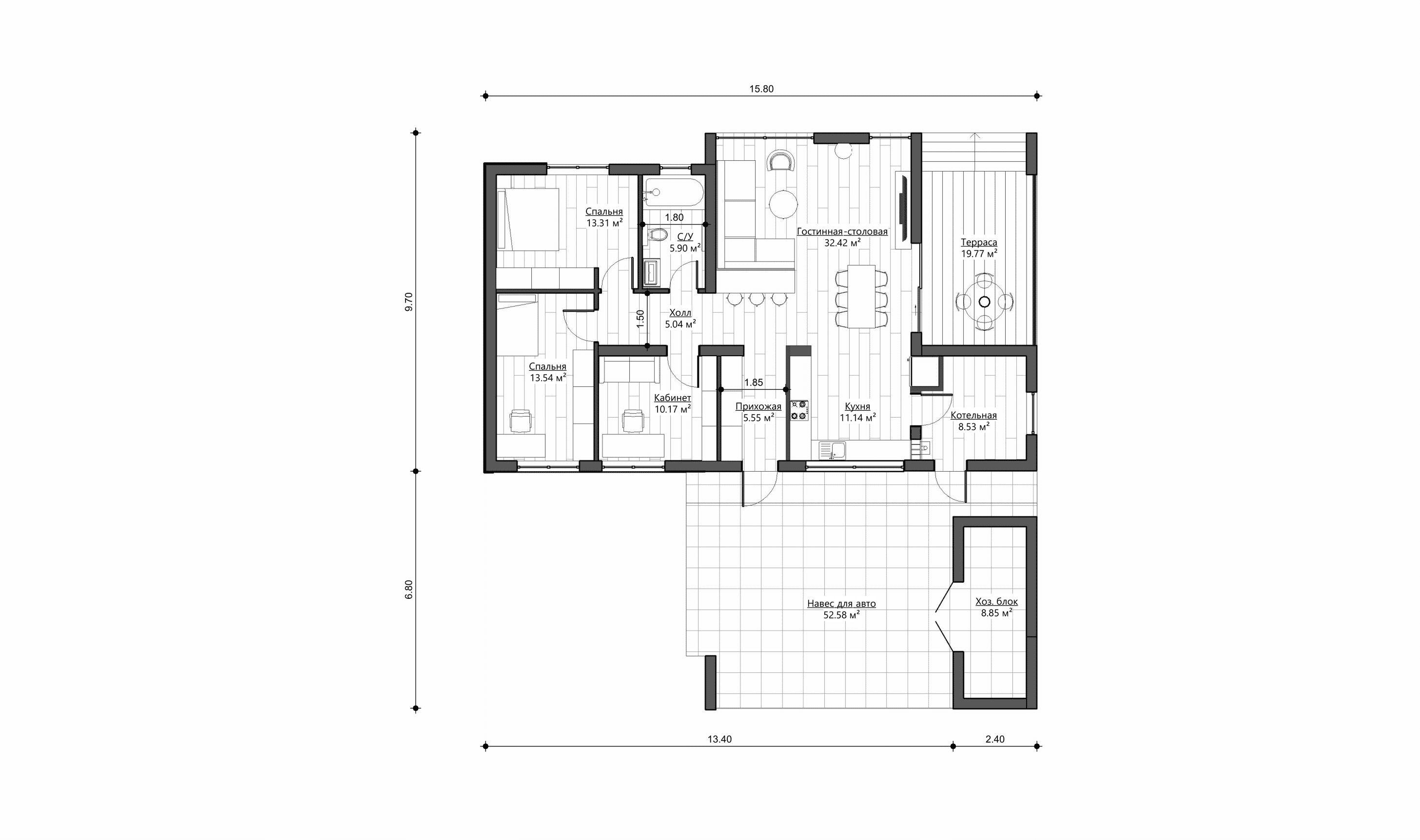 • Общая площадь (с террасами и навесом)