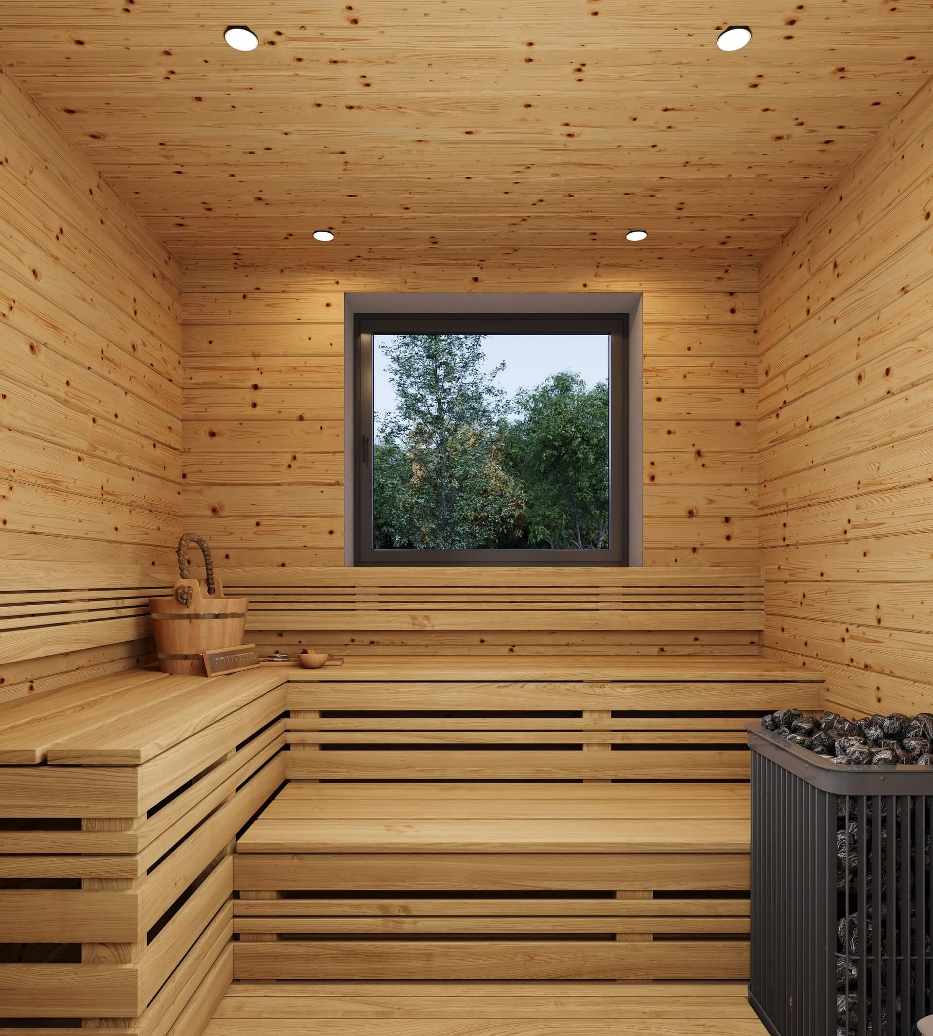 В доме располагается сауна, несколько санузлов и котельная с достаточной площадью для расположения всего необходимого оборудования.