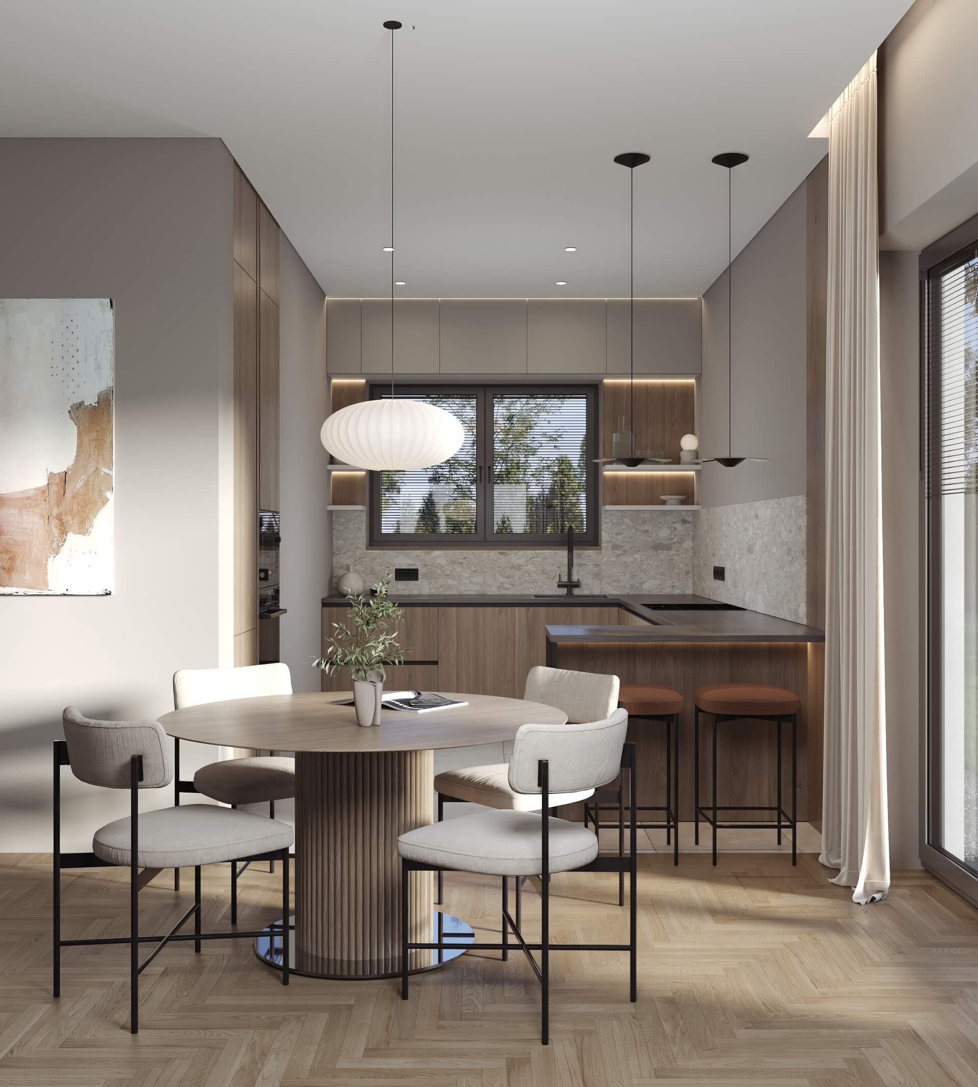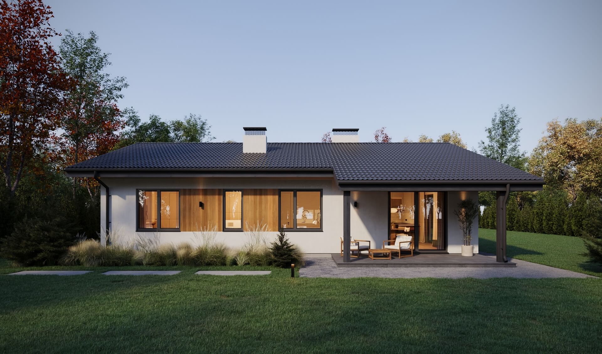 Просторная кухня-гостиная с возможностью предусмотреть камин и крытая терраса позволит провести множество прекрасных вечеров в компании близких вам людей.