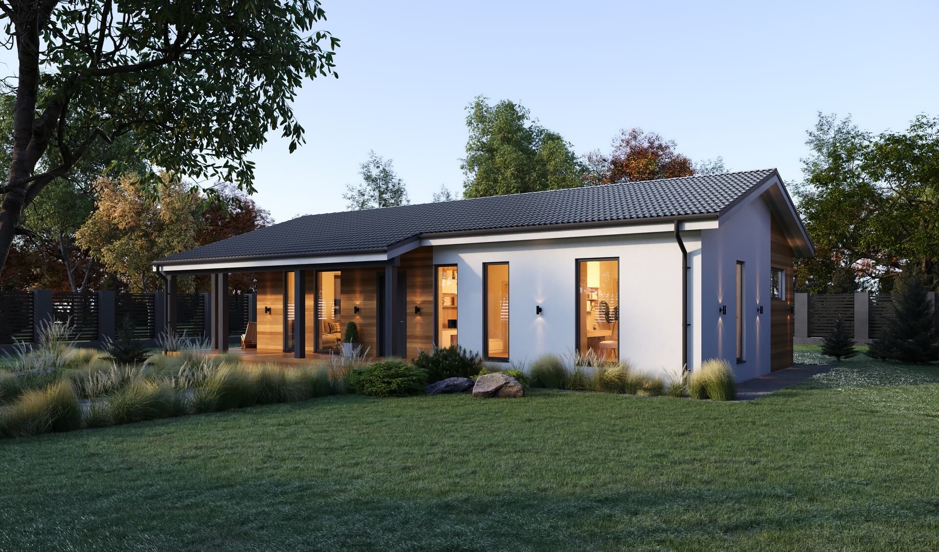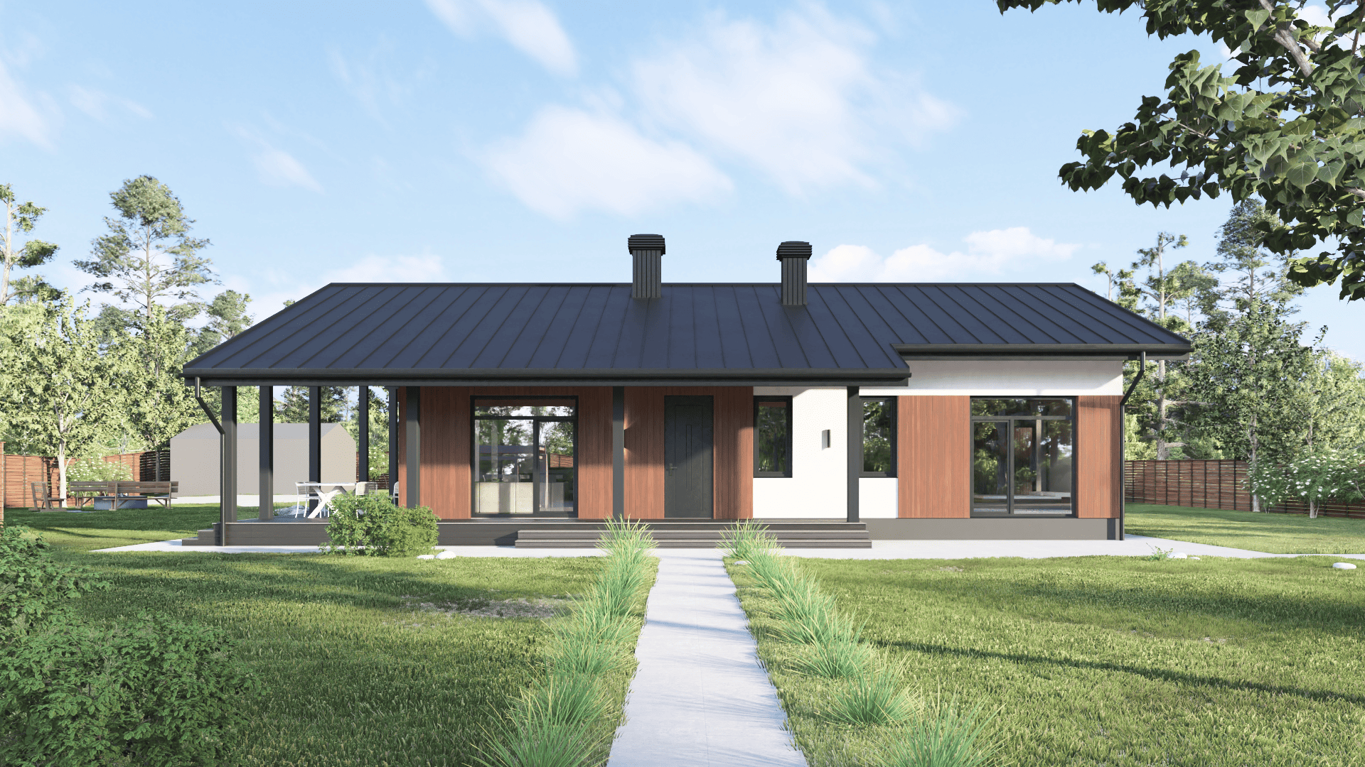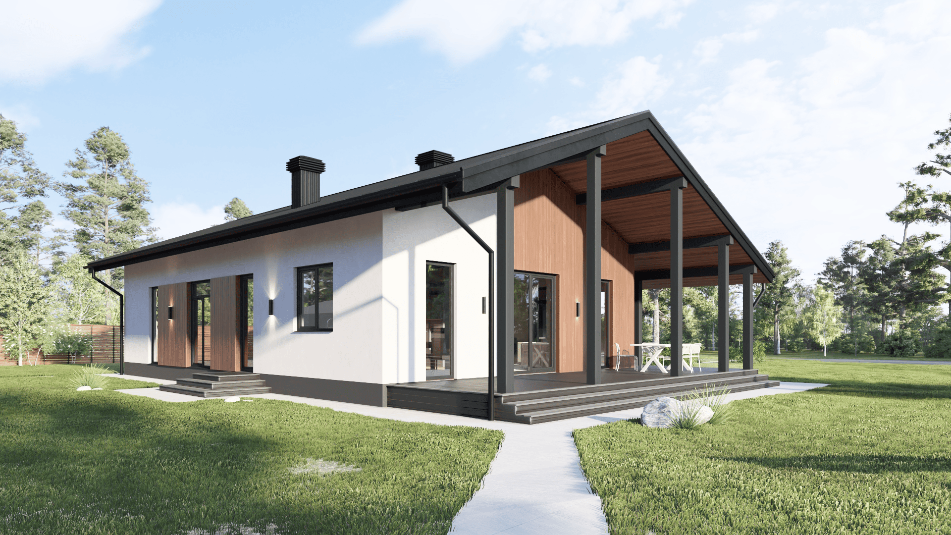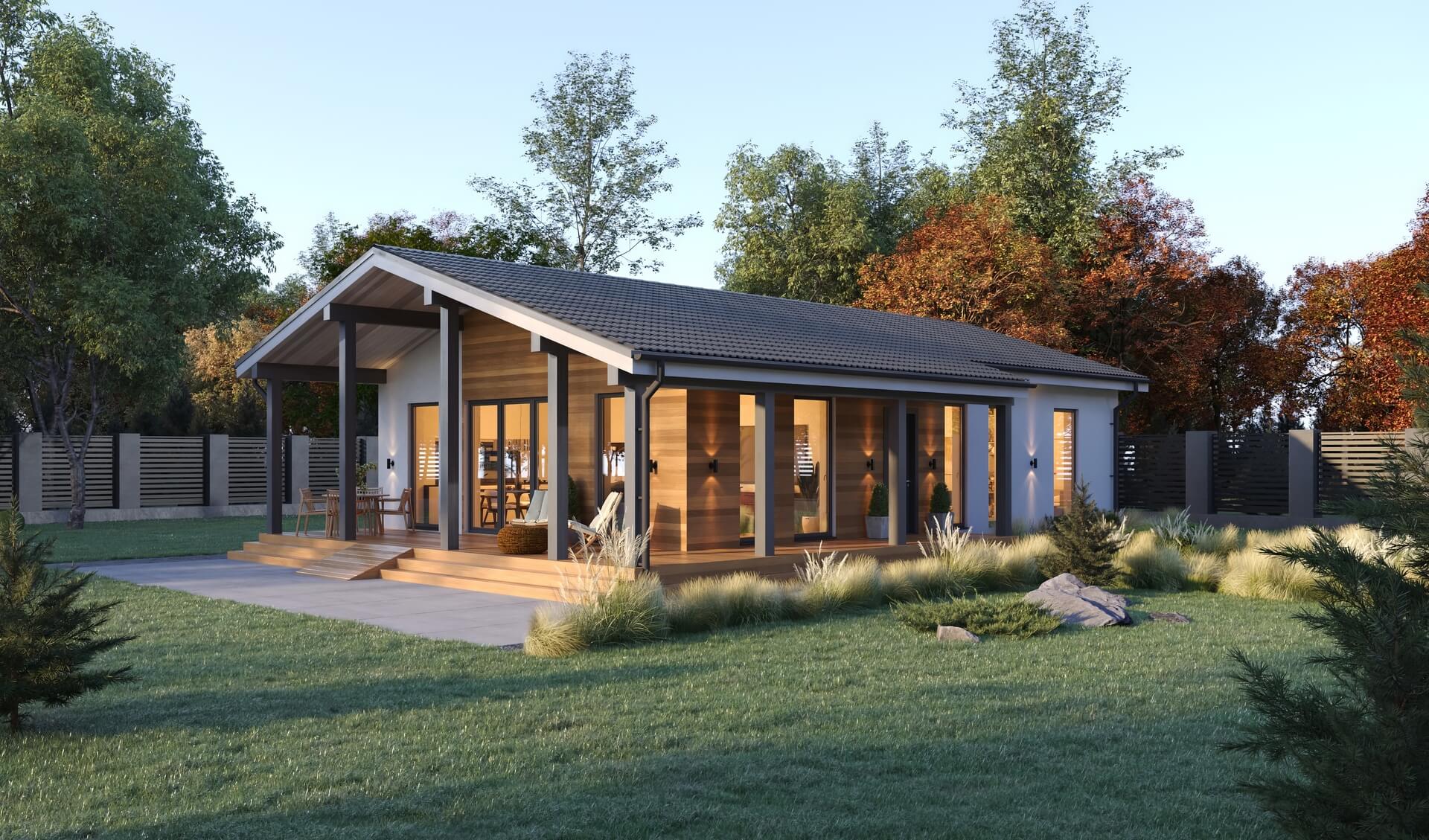 Простой и эстетичный дом отлично подойдет для постоянного проживания семьи из 3-4 человек.