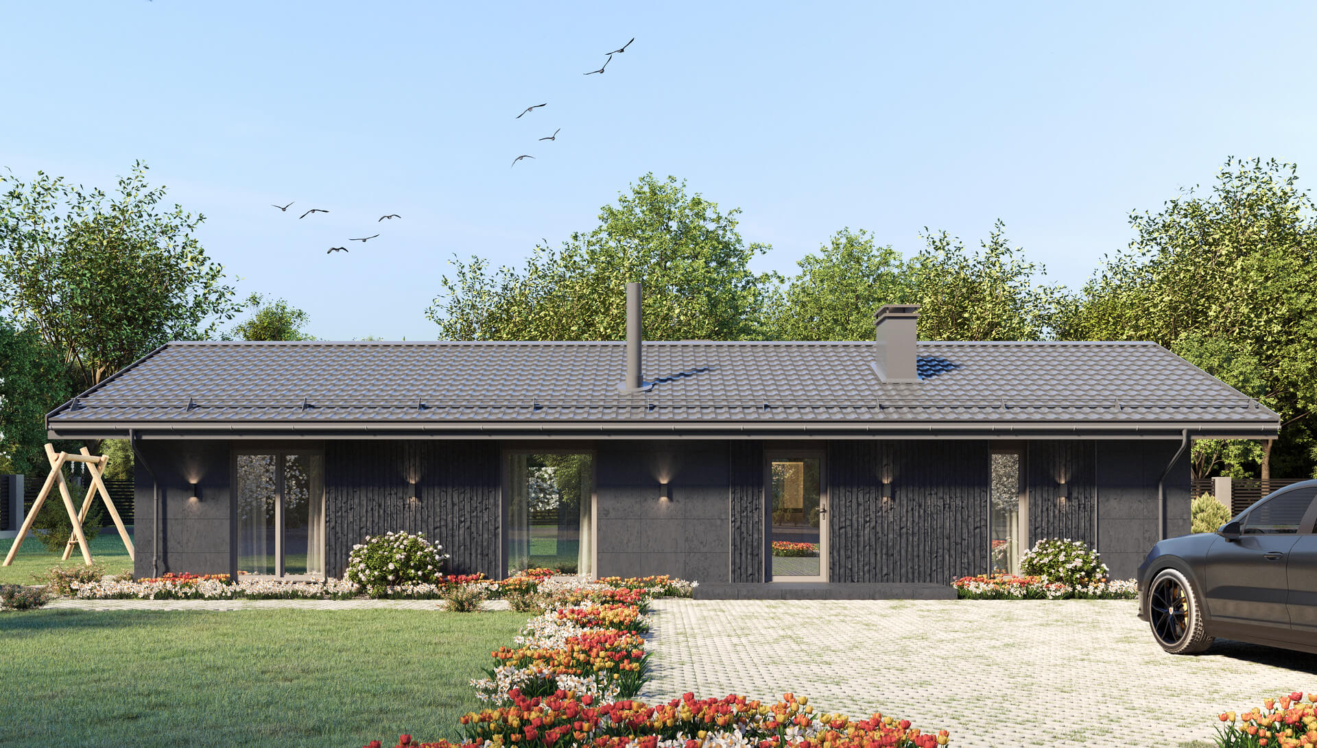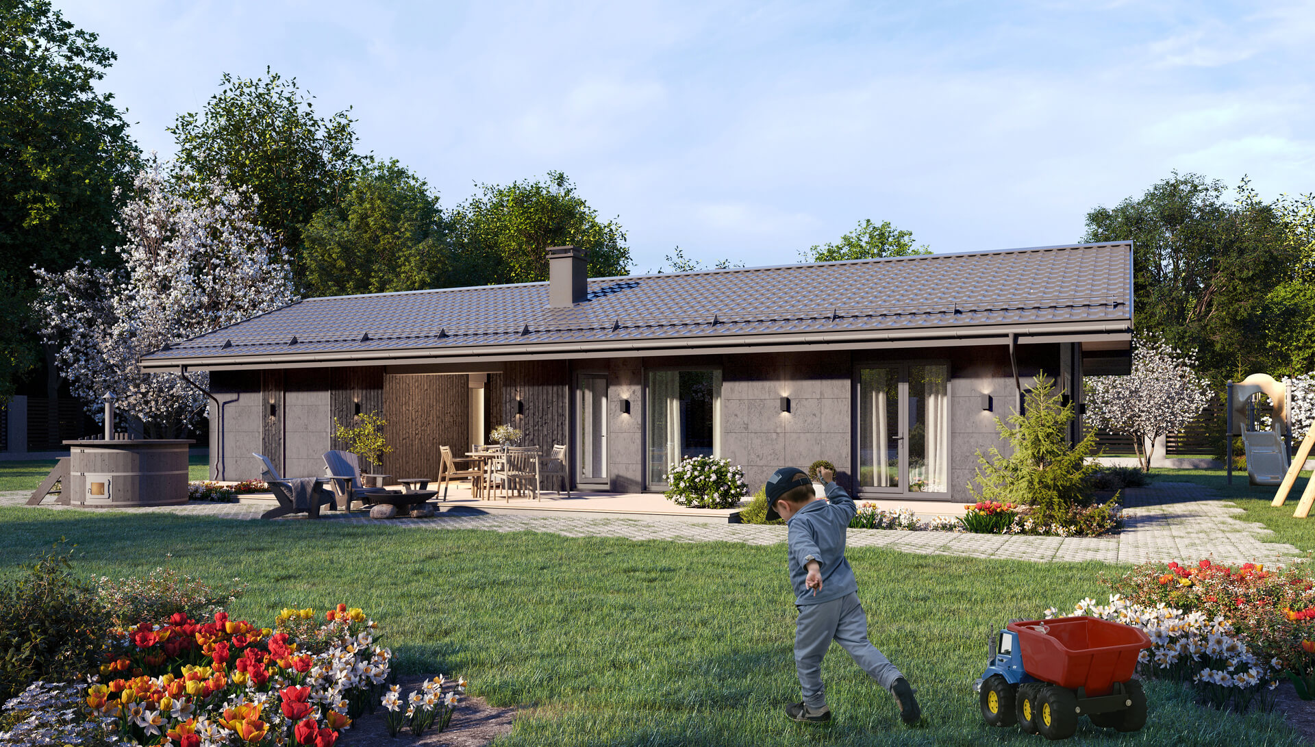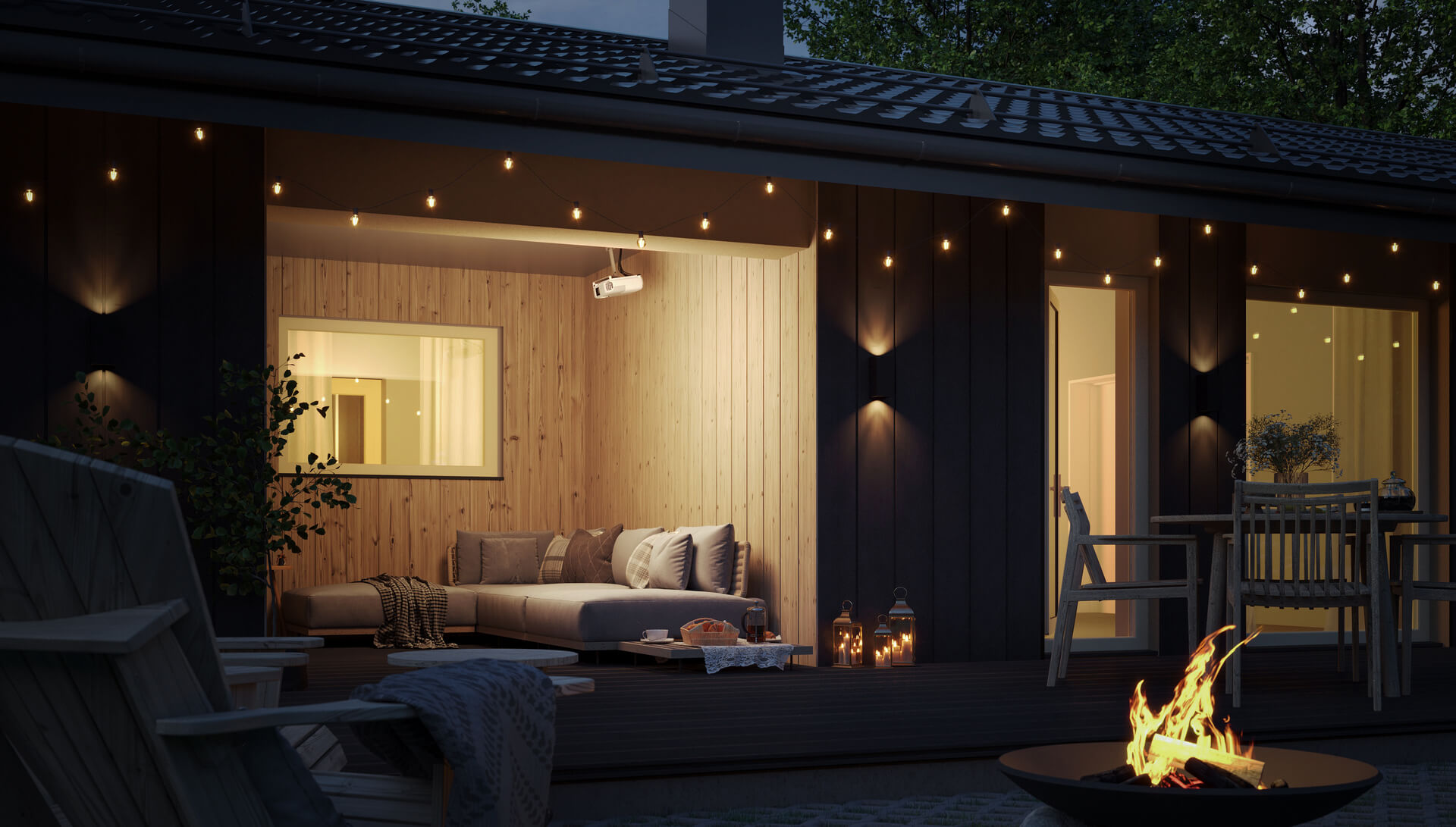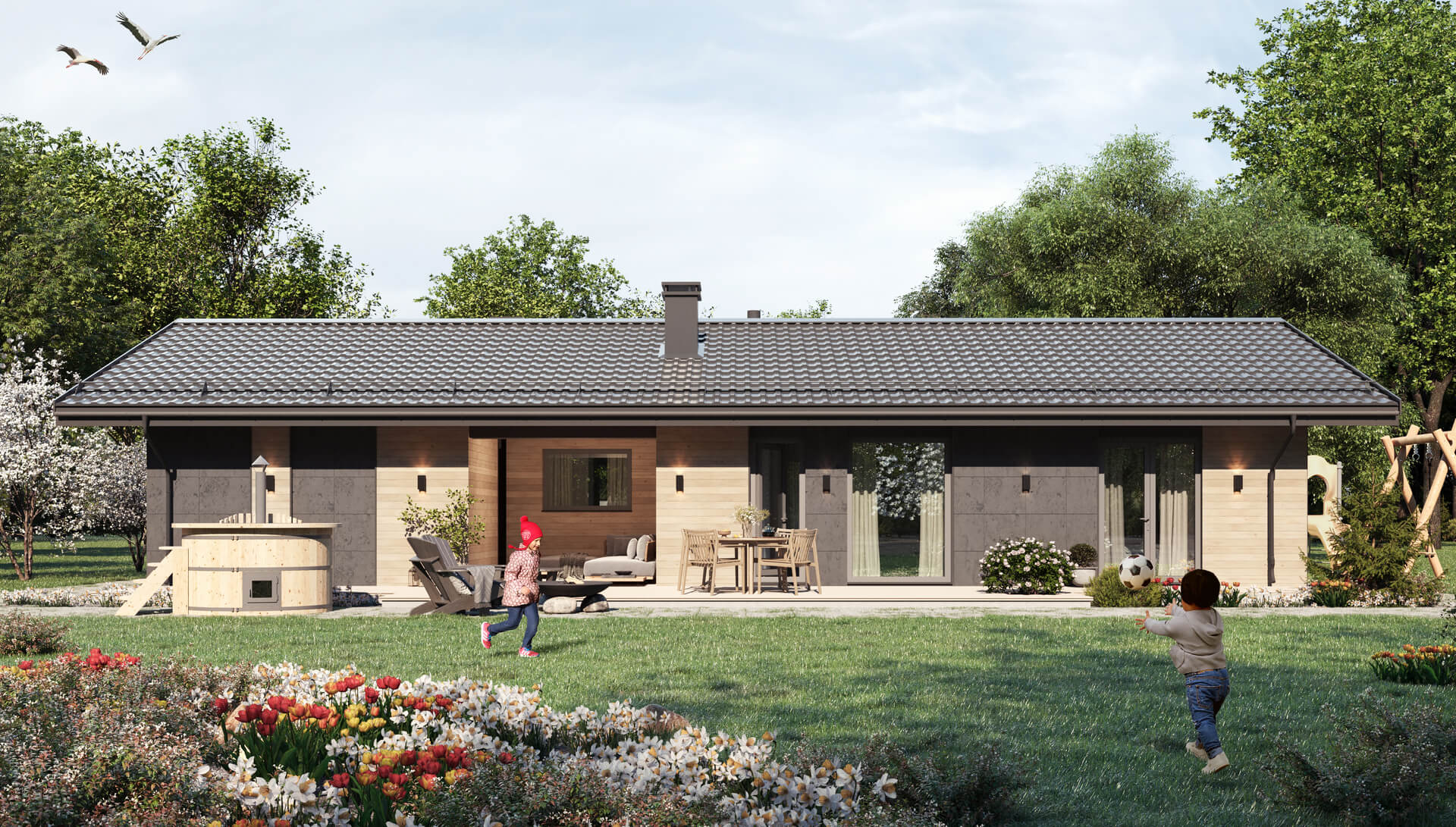 Панорамное остекление с возможностью выхода на террасу прямо из спальни позволит наслаждаться утренней природой с чашечкой горячего напитка в руках.