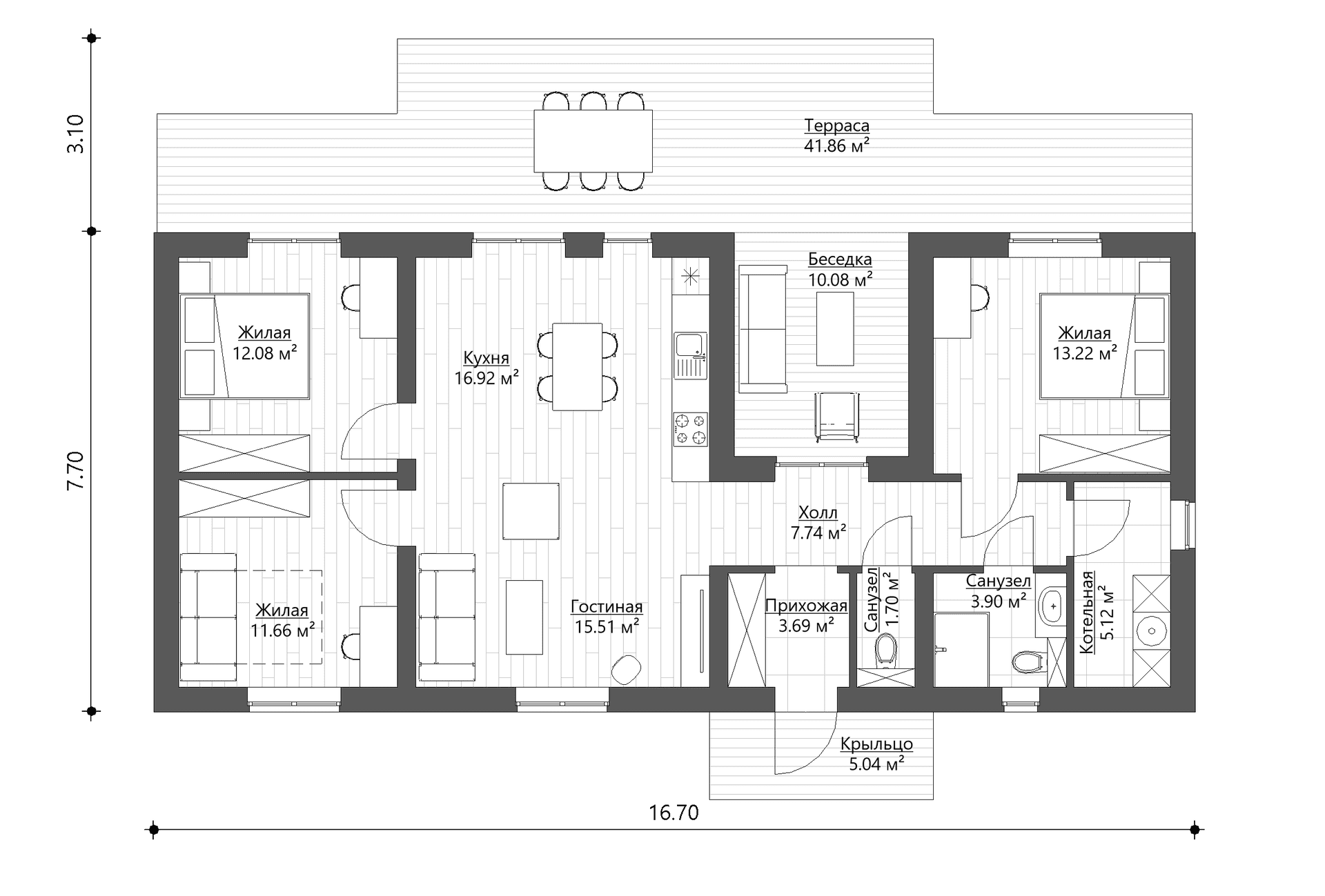 • Общая площадь (с террасами и навесом)