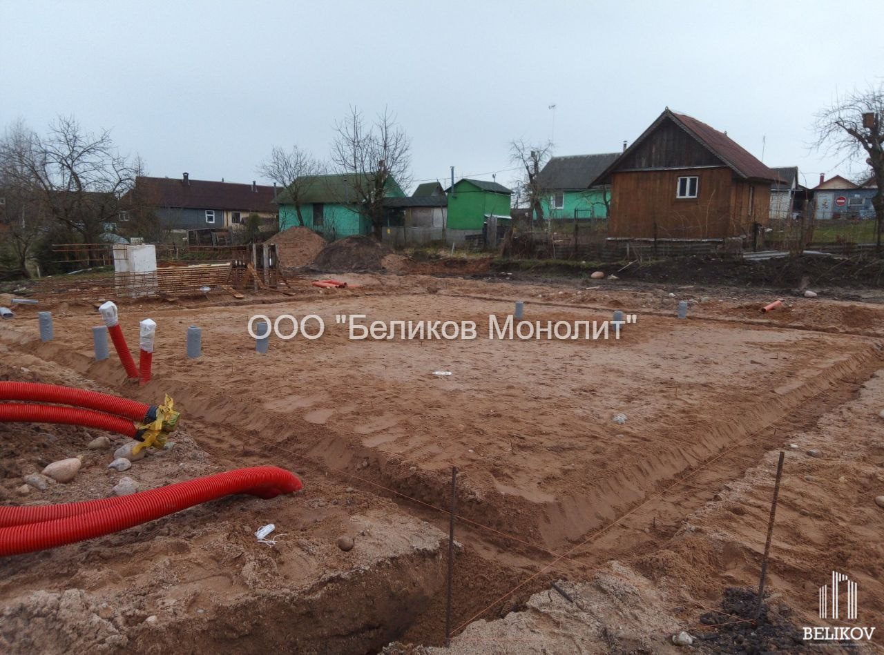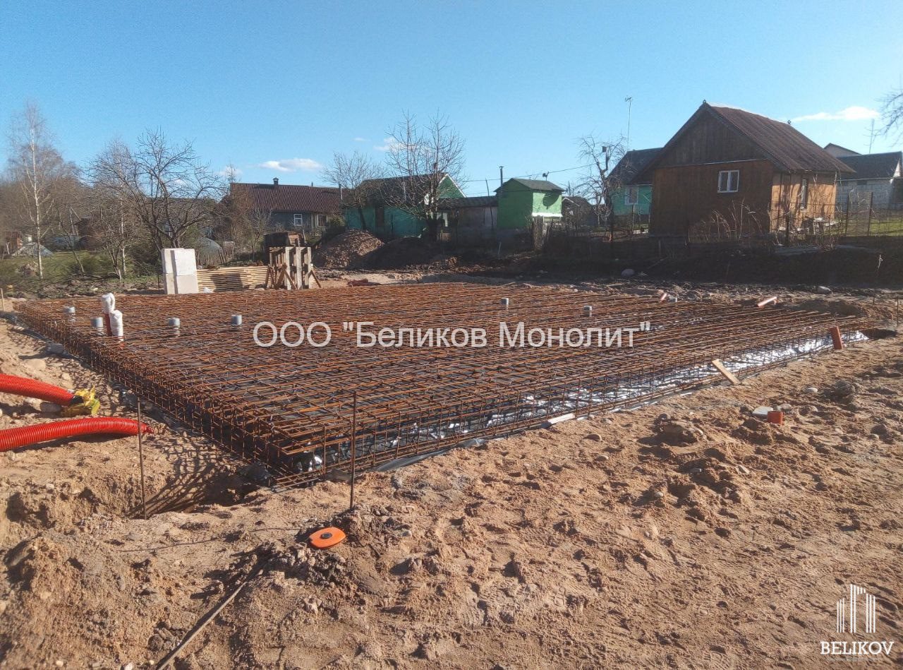 плитный фундамент с ребрами вниз под дом г. Логойск
