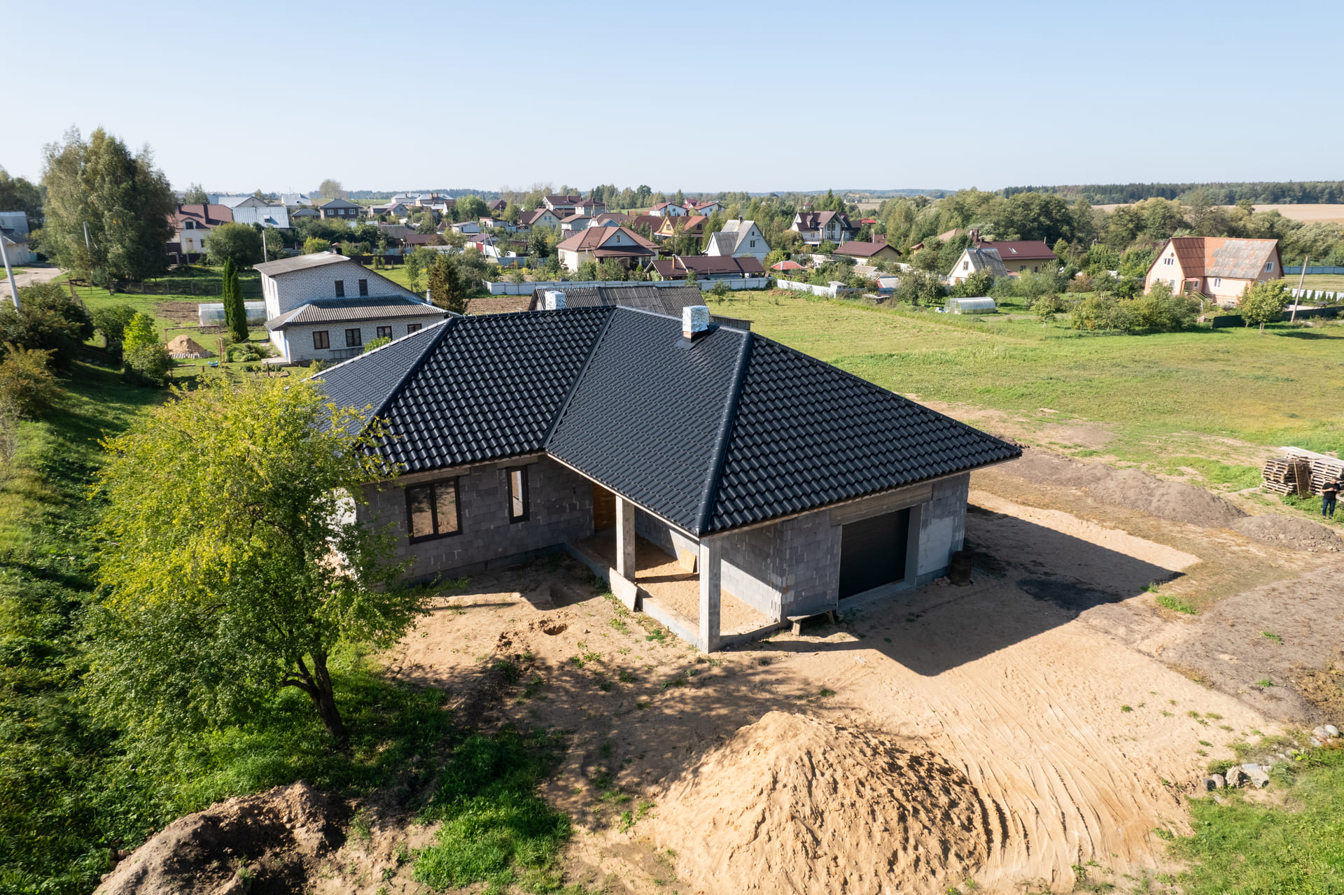 Стропильная система из сухой строганной доски 45х195мм. Кровля - Мягкая черепица по стропильной системе. Так же пирог кровли включает в себя гидроизоляцию из диффузионной мембраны Delta Neo Vent, утепление плитным базальтовым утеплителем Paroc eXtra 250 мм. и пароизоляцию Delta c проклейкой швов специальным скотчем.