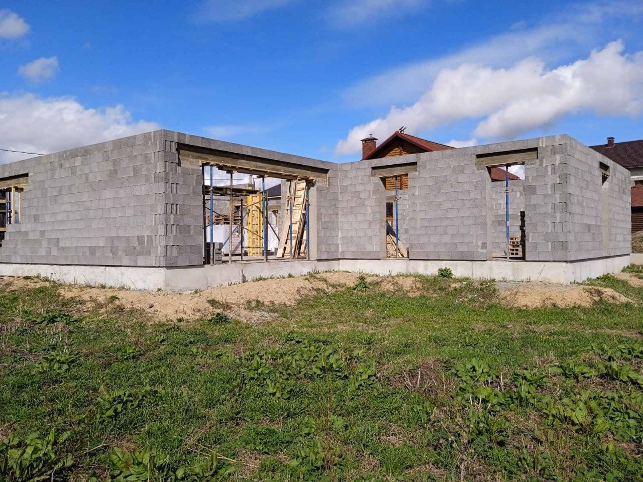 Стены из газобетонных блоков: Наружные – 400 мм. D400. Внутренние несущие – 250 мм. D500. Перегородки – 150 мм. D500. Армирование через каждые три ряда + подоконные зоны. Все бетонные элементы утеплены ЭППС + блок для исключения мостиков холода