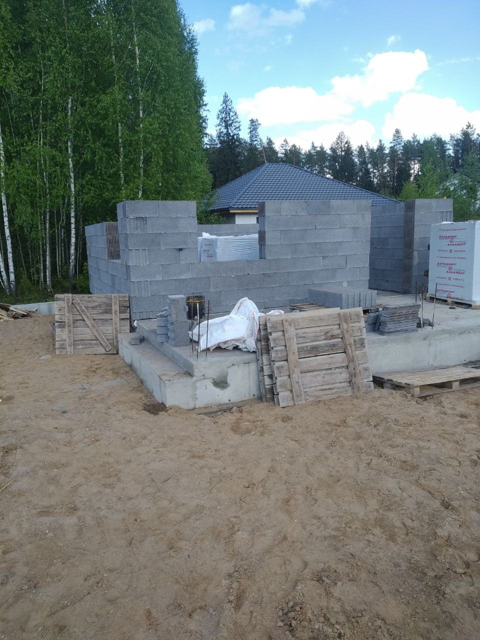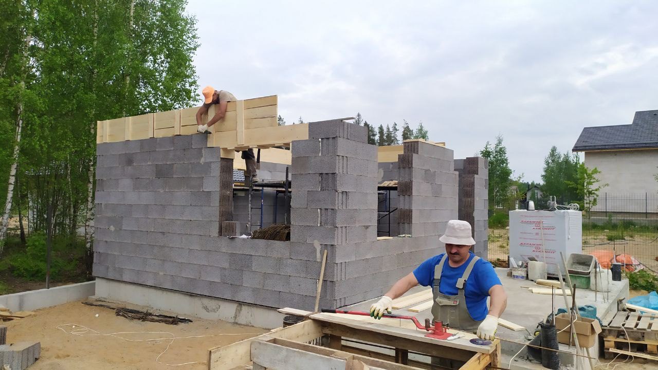 Стены из газобетонных блоков: Наружные – 400 мм. D400. Внутренние несущие – 250 мм. D500. Перегородки – 150 мм. D500. Армирование через каждые три ряда + подоконные зоны. Все бетонные элементы утеплены ЭППС + блок для исключения мостиков холода