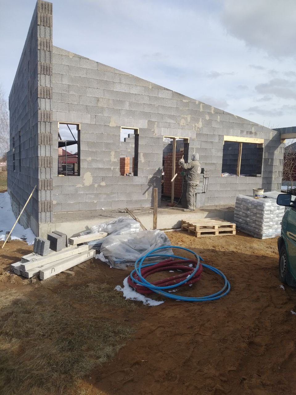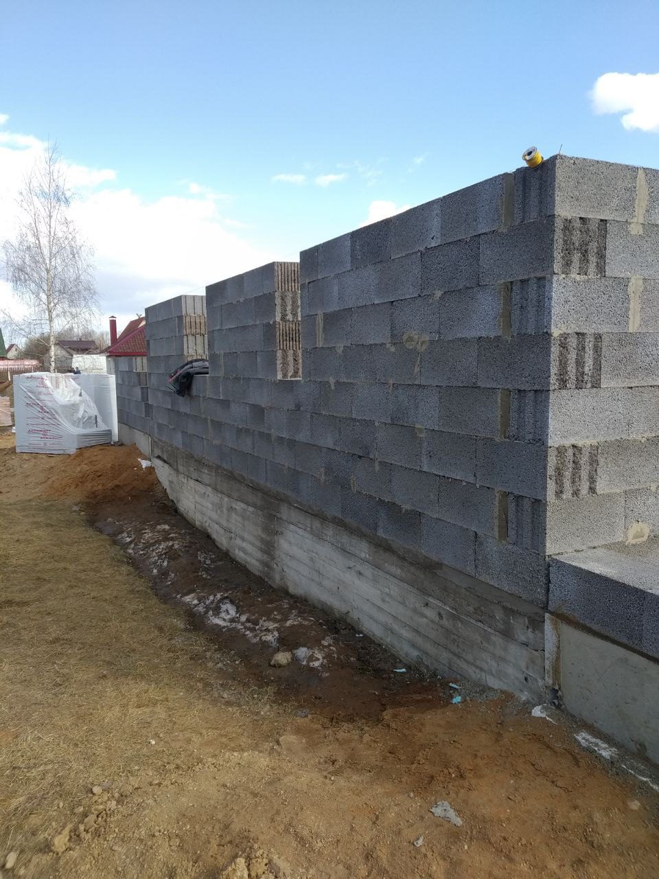 Стены из газобетонных блоков: Наружные – 400 мм. D400. Внутренние несущие – 250 мм. D500. Перегородки – 150 мм. D500. Армирование через каждые три ряда + подоконные зоны. Все бетонные элементы утеплены ЭППС + блок для исключения мостиков холода