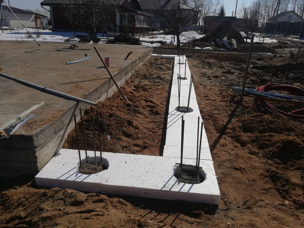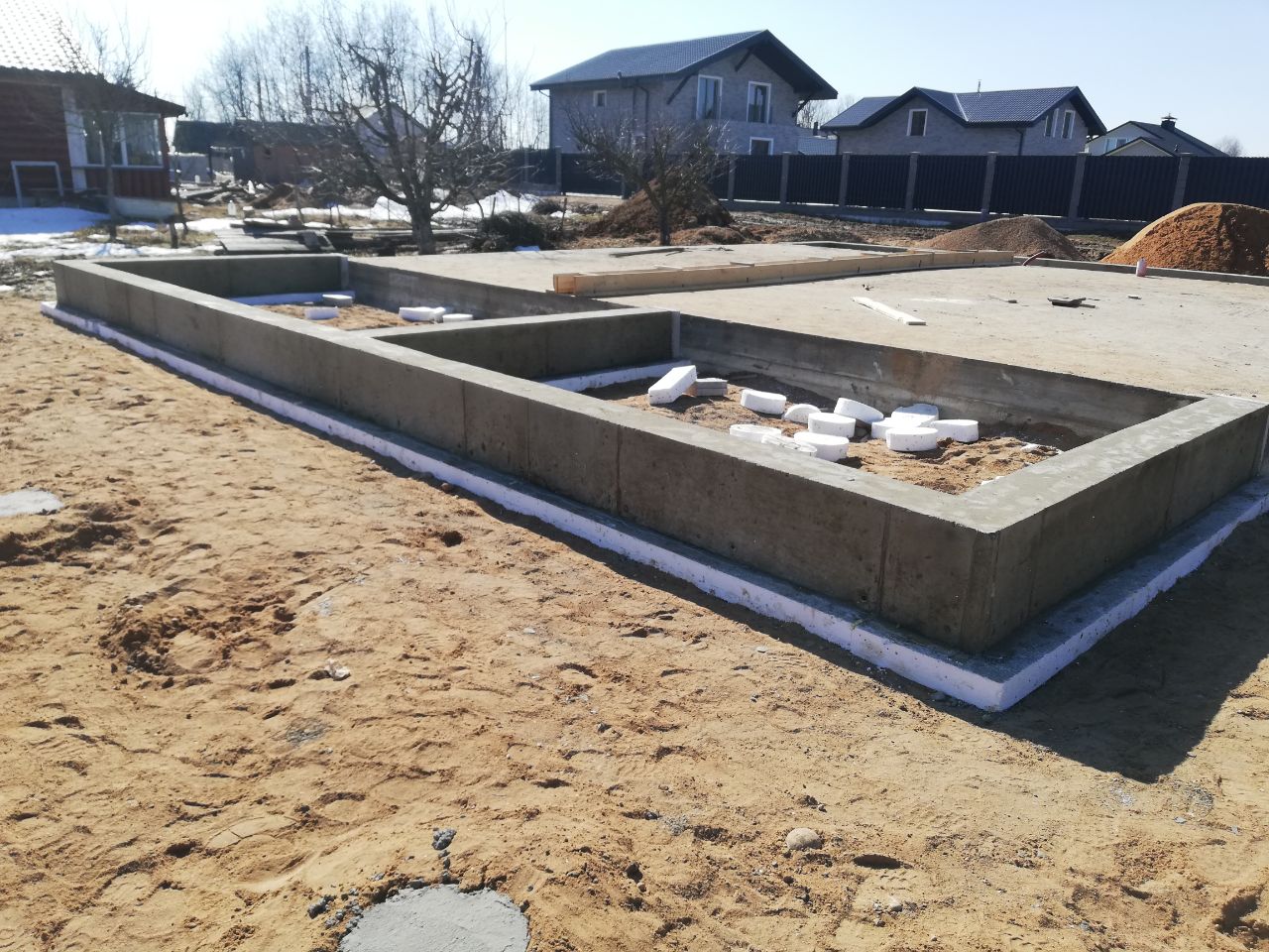 В данном проекте в качестве фундамента была выбрана утепленная шведская плита t=300 мм. Коммуникации нулевого цикла включают: разводку канализации, ввод воды, ввод электрического кабеля, выводы кабеля для ЛОС и скважины, подвод воздуха к камину.