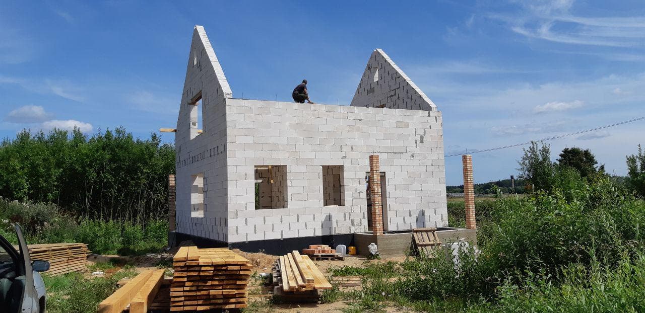 Стены из газобетонных блоков: Наружные – 400 мм. D400. Внутренние несущие – 250 мм. D500. Перегородки – 150 мм. D500. Армирование через каждые три ряда + подоконные зоны. Все бетонные элементы утеплены ЭППС + блок для исключения мостиков холода