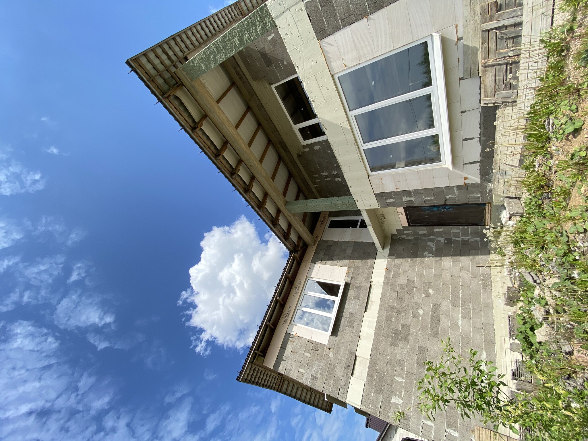 Стропильная система из сухой строганной доски 45х195мм. Кровля - Мягкая черепица по стропильной системе. Так же пирог кровли включает в себя гидроизоляцию из диффузионной мембраны Delta Neo Vent, утепление плитным базальтовым утеплителем Paroc eXtra 250 мм. и пароизоляцию Delta c проклейкой швов специальным скотчем.