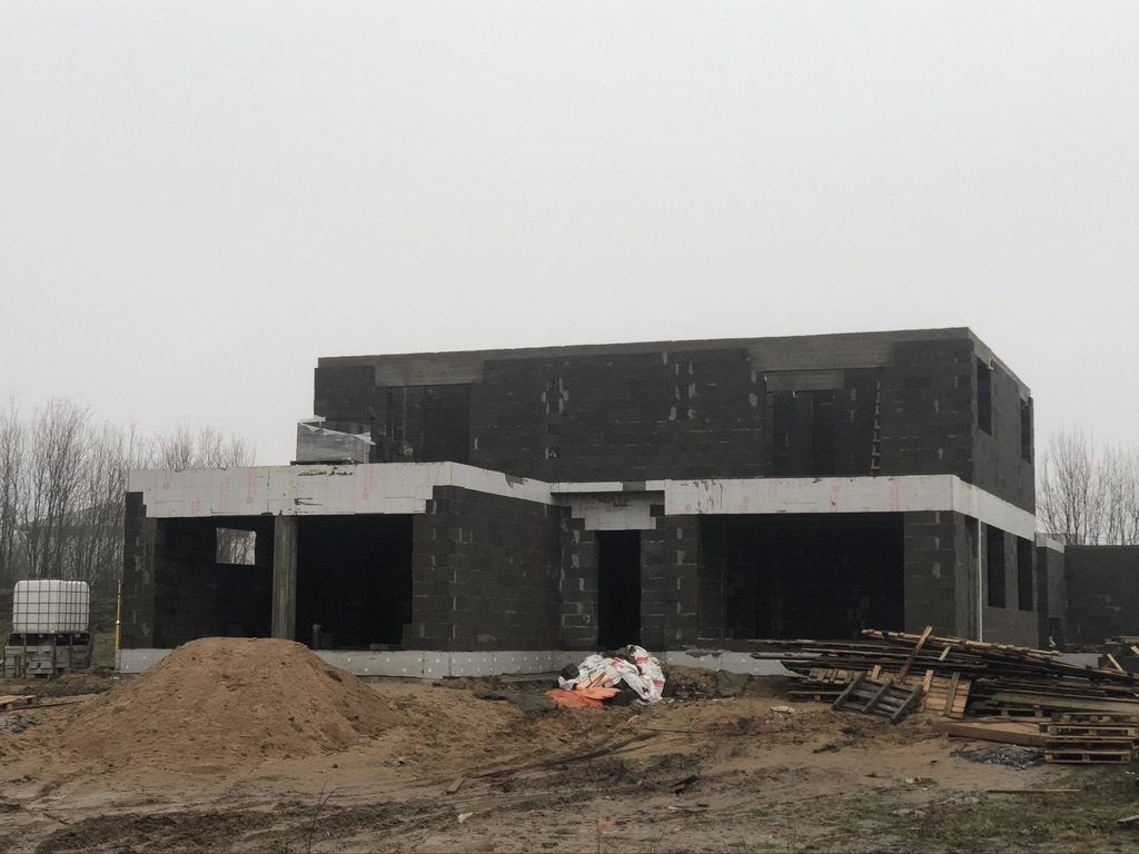 Стены из газобетонных блоков: Наружные – 400 мм. D400. Внутренние несущие – 250 мм. D500. Перегородки – 150 мм. D500. Армирование через каждые три ряда + подоконные зоны. Все бетонные элементы утеплены ЭППС + блок для исключения мостиков холода