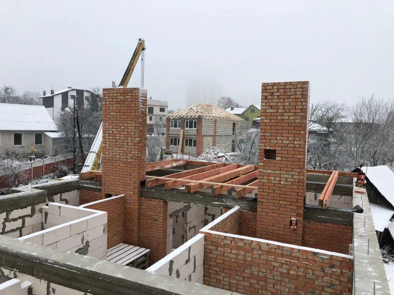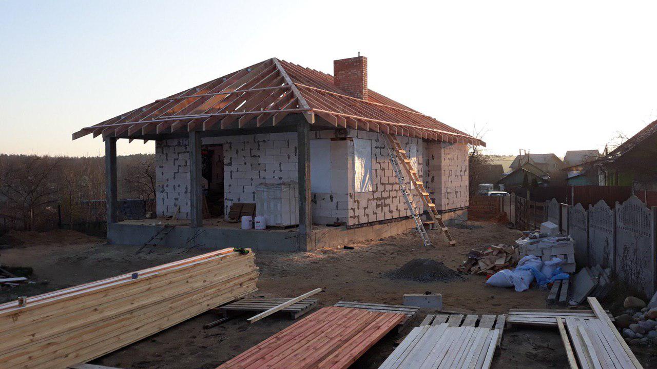 Стропильная система из сухой строганной доски 45х195мм. Кровля - Мягкая черепица по стропильной системе. Так же пирог кровли включает в себя гидроизоляцию из диффузионной мембраны Delta Neo Vent, утепление плитным базальтовым утеплителем Paroc eXtra 250 мм. и пароизоляцию Delta c проклейкой швов специальным скотчем.