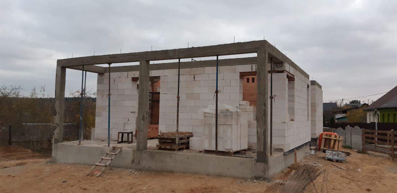 Стены из газобетонных блоков: Наружные – 400 мм. D400. Внутренние несущие – 250 мм. D500. Перегородки – 150 мм. D500. Армирование через каждые три ряда + подоконные зоны. Все бетонные элементы утеплены ЭППС + блок для исключения мостиков холода