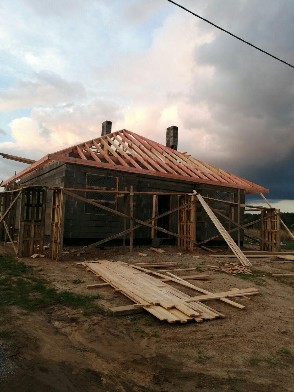 Стропильная система из сухой строганной доски 45х195мм. Кровля - Мягкая черепица по стропильной системе. Так же пирог кровли включает в себя гидроизоляцию из диффузионной мембраны Delta Neo Vent, утепление плитным базальтовым утеплителем Paroc eXtra 250 мм. и пароизоляцию Delta c проклейкой швов специальным скотчем.