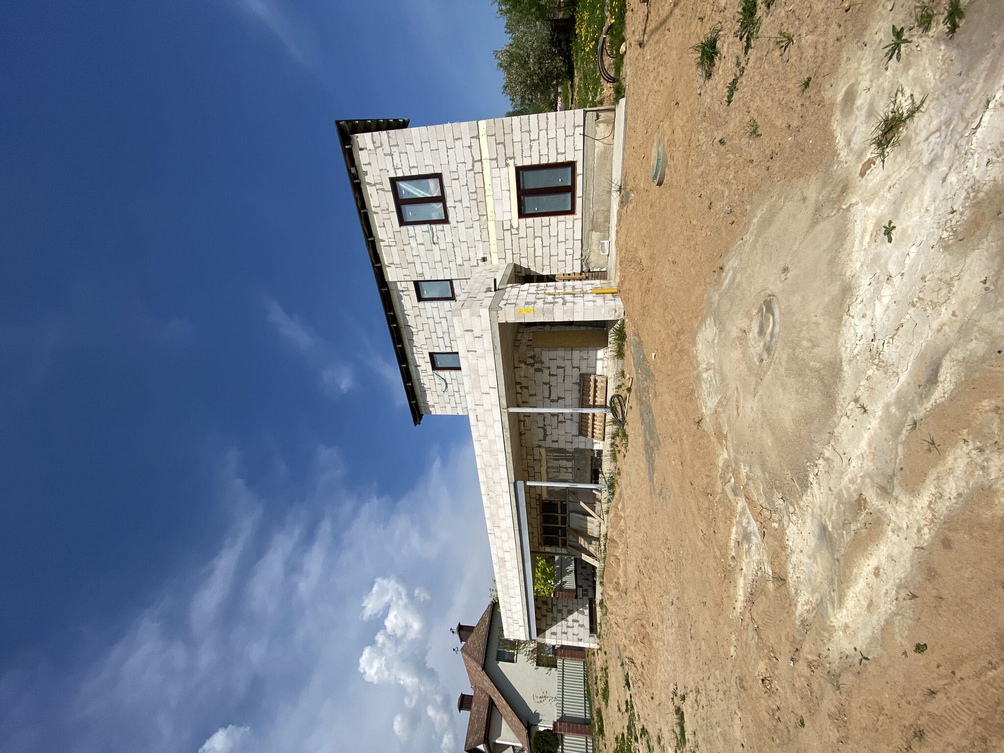 Стены из газобетонных блоков: Наружные – 400 мм. D400. Внутренние несущие – 250 мм. D500. Перегородки – 150 мм. D500. Армирование через каждые три ряда + подоконные зоны. Все бетонные элементы утеплены ЭППС + блок для исключения мостиков холода