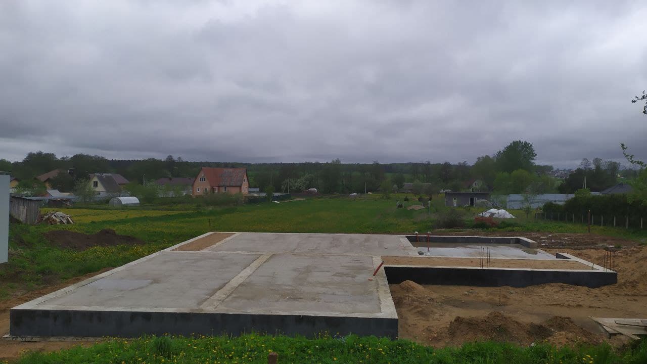 В данном проекте в качестве фундамента была выбрана утепленная шведская плита t=300 мм. Коммуникации нулевого цикла включают: разводку канализации, ввод воды, ввод электрического кабеля, выводы кабеля для ЛОС и скважины, подвод воздуха к камину.