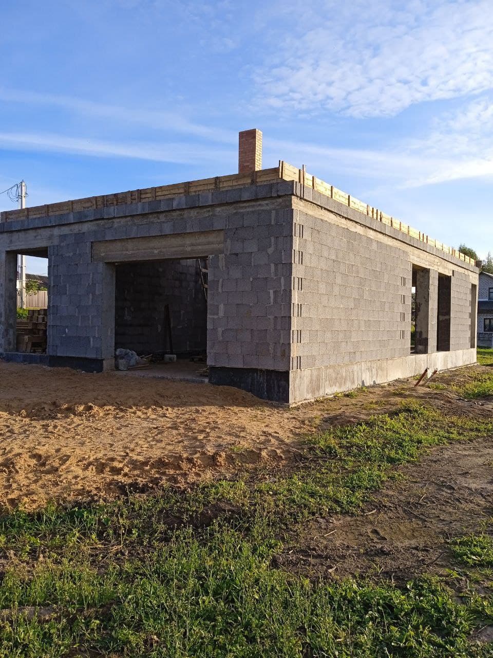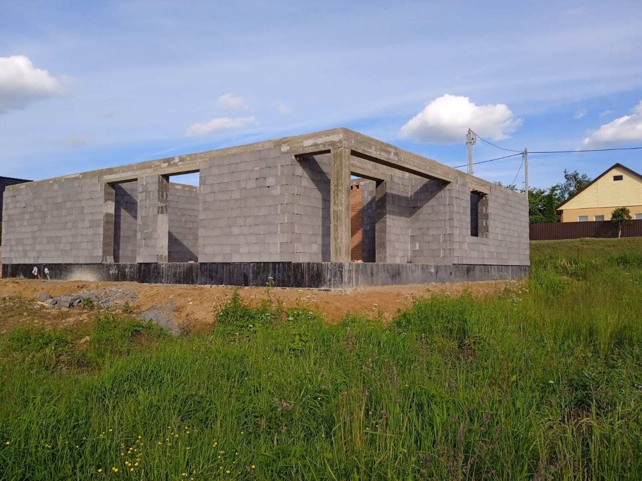 Стены из газобетонных блоков: Наружные – 400 мм. D400. Внутренние несущие – 250 мм. D500. Перегородки – 150 мм. D500. Армирование через каждые три ряда + подоконные зоны. Все бетонные элементы утеплены ЭППС + блок для исключения мостиков холода