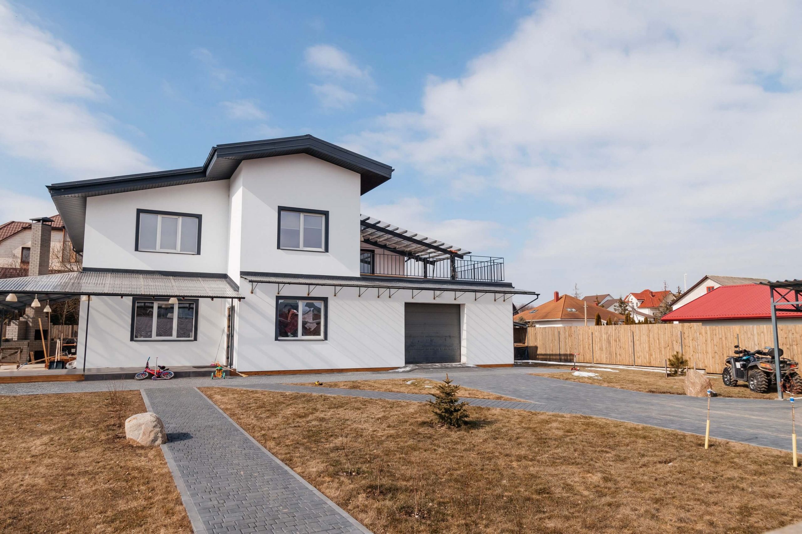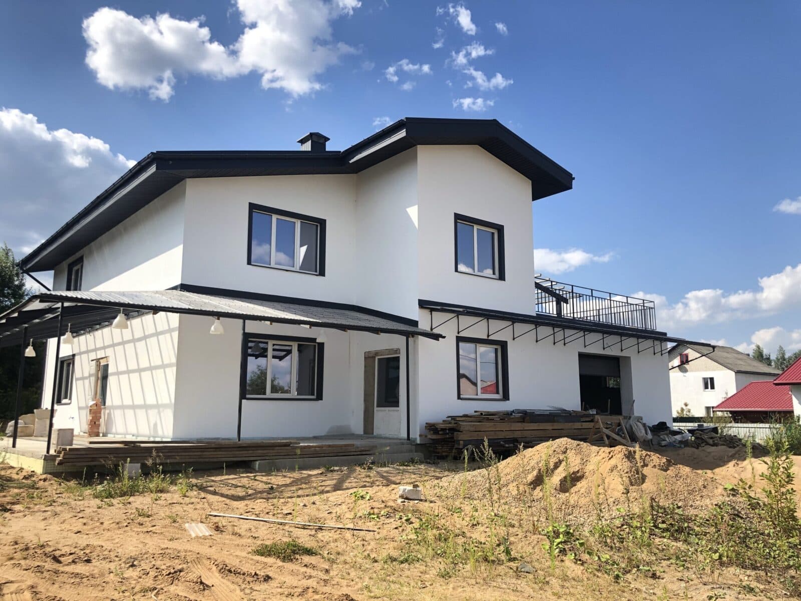 Стропильная система из сухой строганной доски 45х195мм. Кровля - Мягкая черепица по стропильной системе. Так же пирог кровли включает в себя гидроизоляцию из диффузионной мембраны Delta Neo Vent, утепление плитным базальтовым утеплителем Paroc eXtra 250 мм. и пароизоляцию Delta c проклейкой швов специальным скотчем.