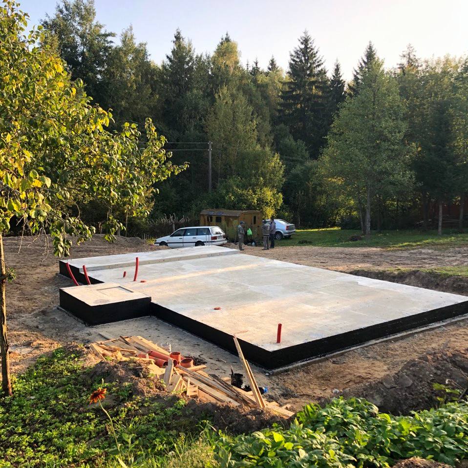 В данном проекте в качестве фундамента была выбрана утепленная шведская плита t=300 мм. Коммуникации нулевого цикла включают: разводку канализации, ввод воды, ввод электрического кабеля, выводы кабеля для ЛОС и скважины, подвод воздуха к камину.