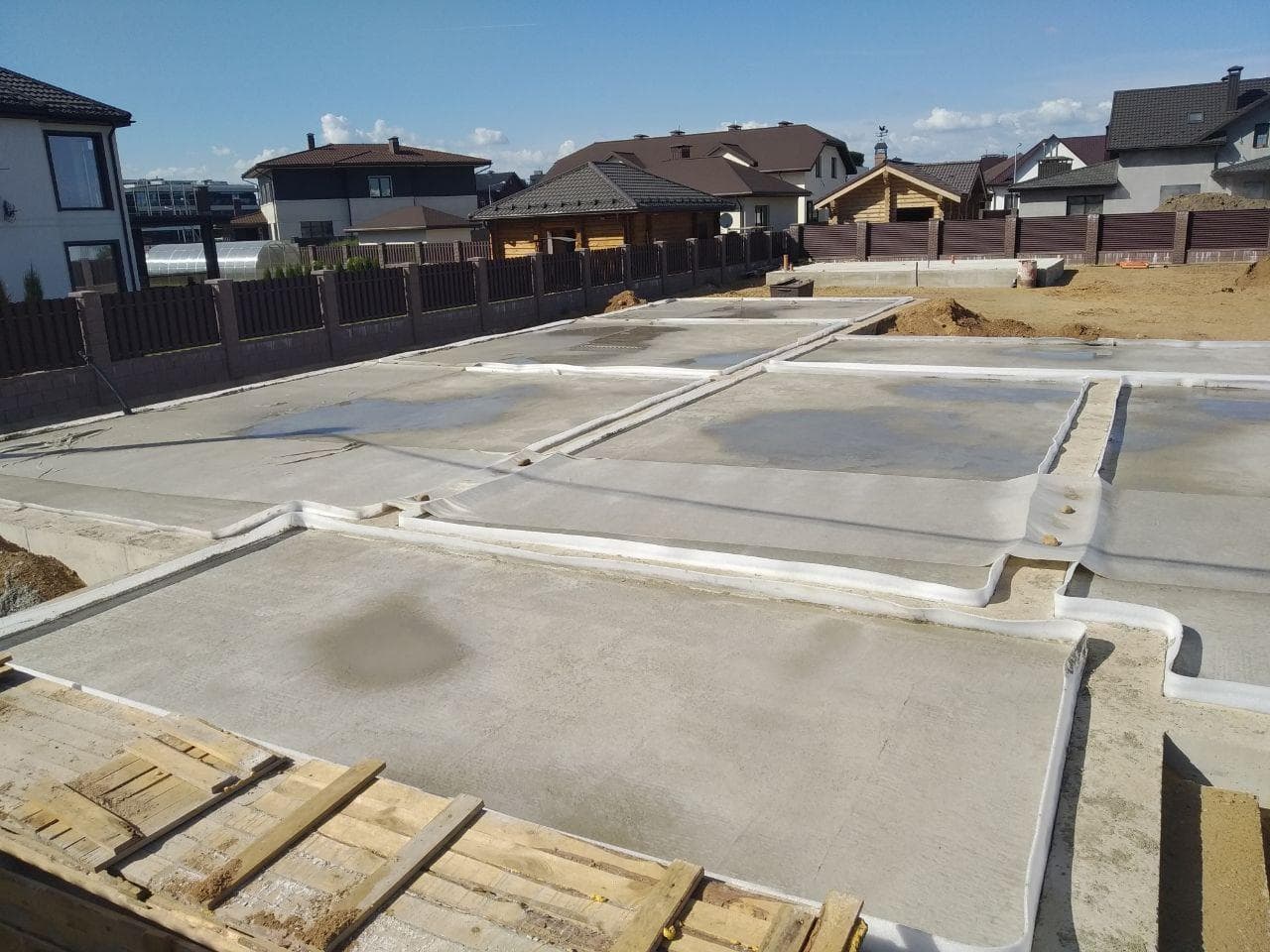 В данном проекте в качестве фундамента была выбрана утепленная шведская плита t=300 мм. Коммуникации нулевого цикла включают: разводку канализации, ввод воды, ввод электрического кабеля, выводы кабеля для ЛОС и скважины, подвод воздуха к камину.