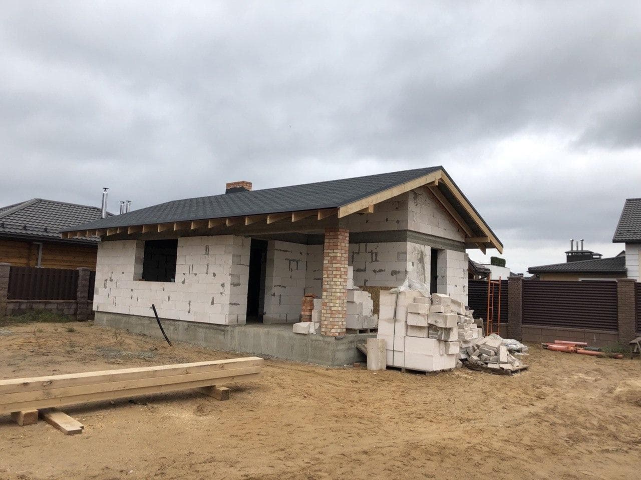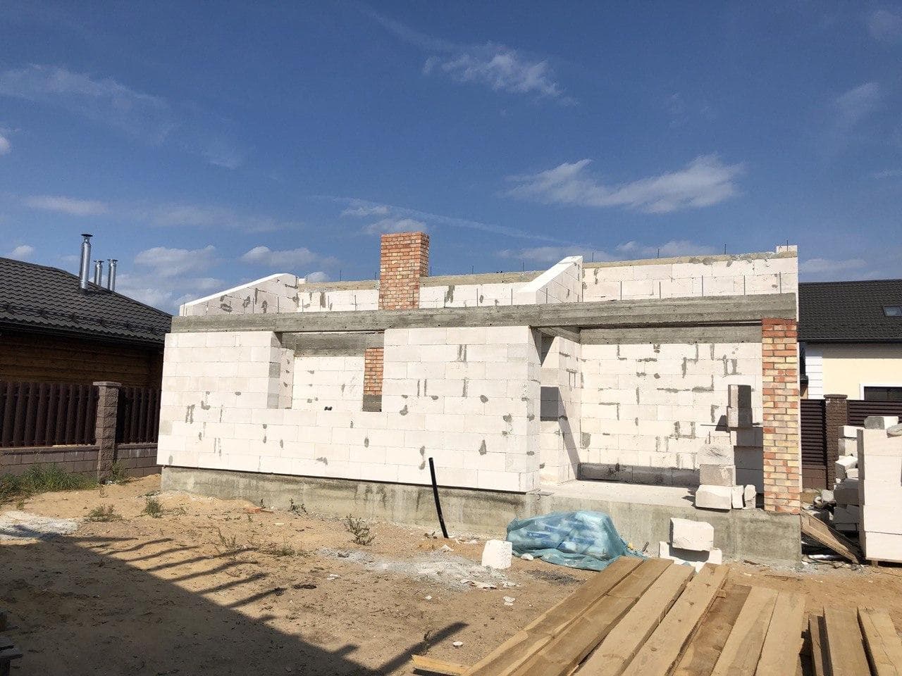 Стены из газобетонных блоков: Наружные – 400 мм. D400. Внутренние несущие – 250 мм. D500. Перегородки – 150 мм. D500. Армирование через каждые три ряда + подоконные зоны. Все бетонные элементы утеплены ЭППС + блок для исключения мостиков холода