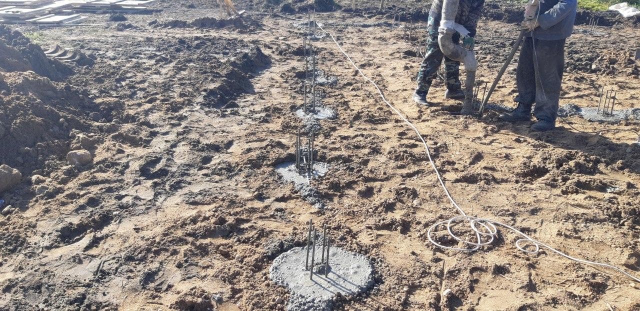 В данном проекте в качестве фундамента была выбрана утепленная шведская плита t=300 мм. Коммуникации нулевого цикла включают: разводку канализации, ввод воды, ввод электрического кабеля, выводы кабеля для ЛОС и скважины, подвод воздуха к камину.